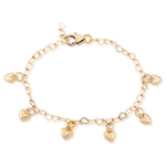 14k gold filled Heart shaped chain with multiple puffy heart charms, child bracelet (BC-1)