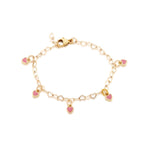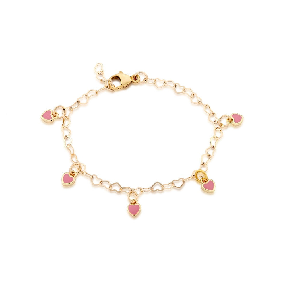 This Bracelet will look like a million on your baby's hand. It is made of 14kt gold heart shaped chain and multiple pink 14k gold filled heart charms.