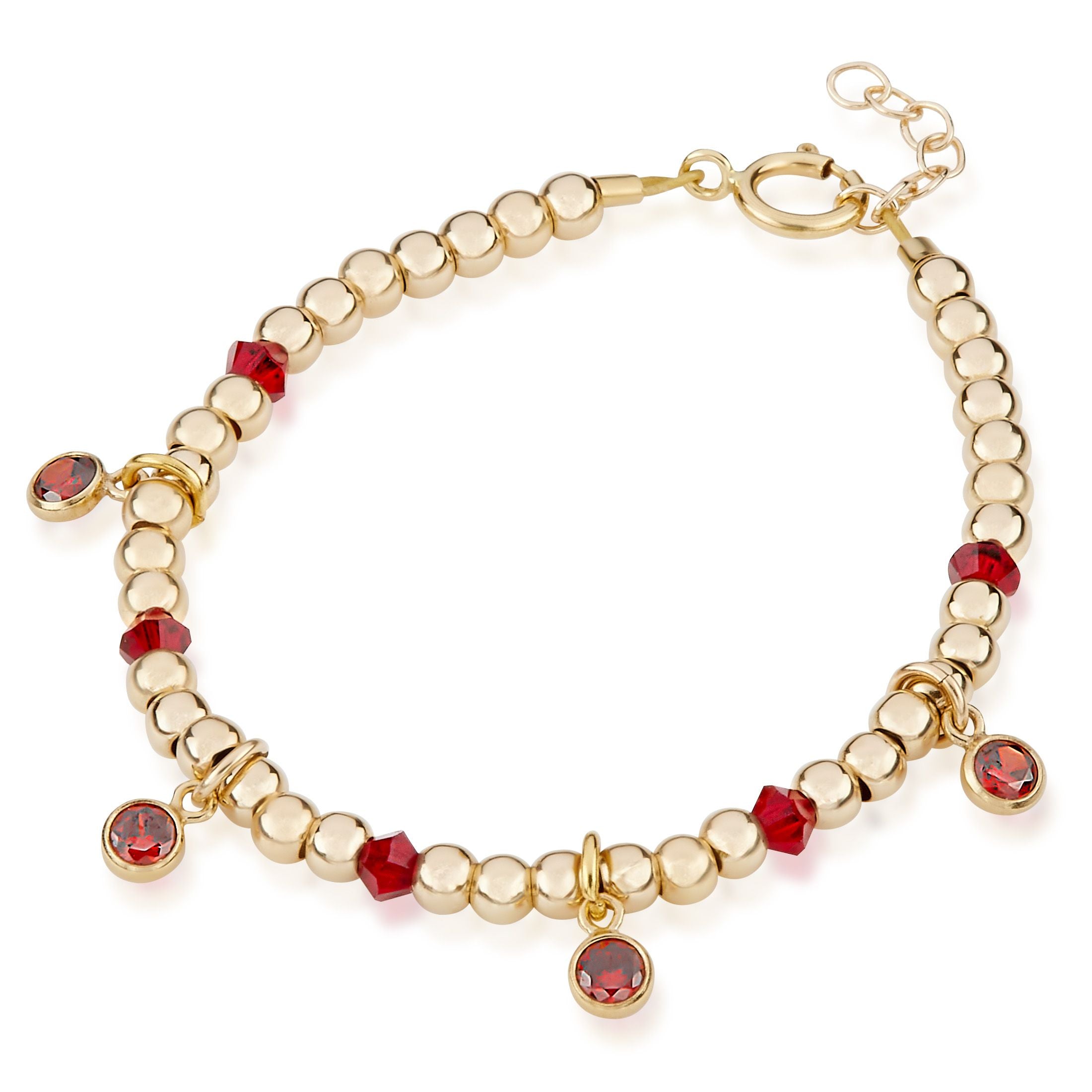 14kt gold beads with red crystals and multiple ruby charms child's bracelet (B2140-GR)