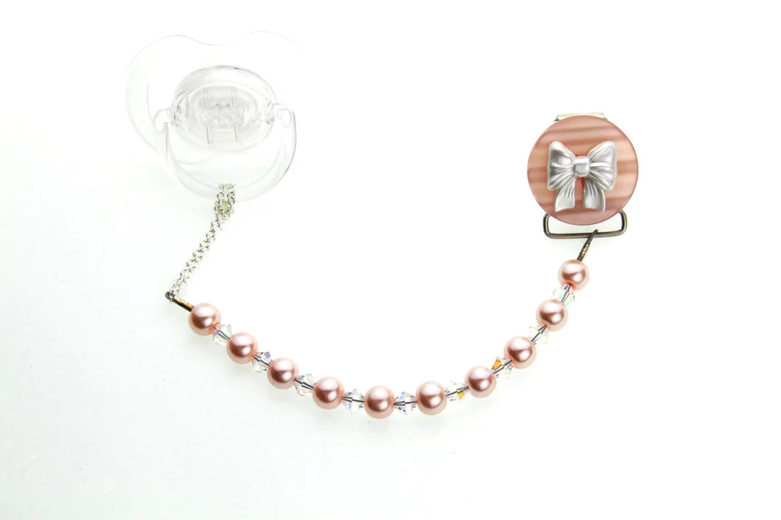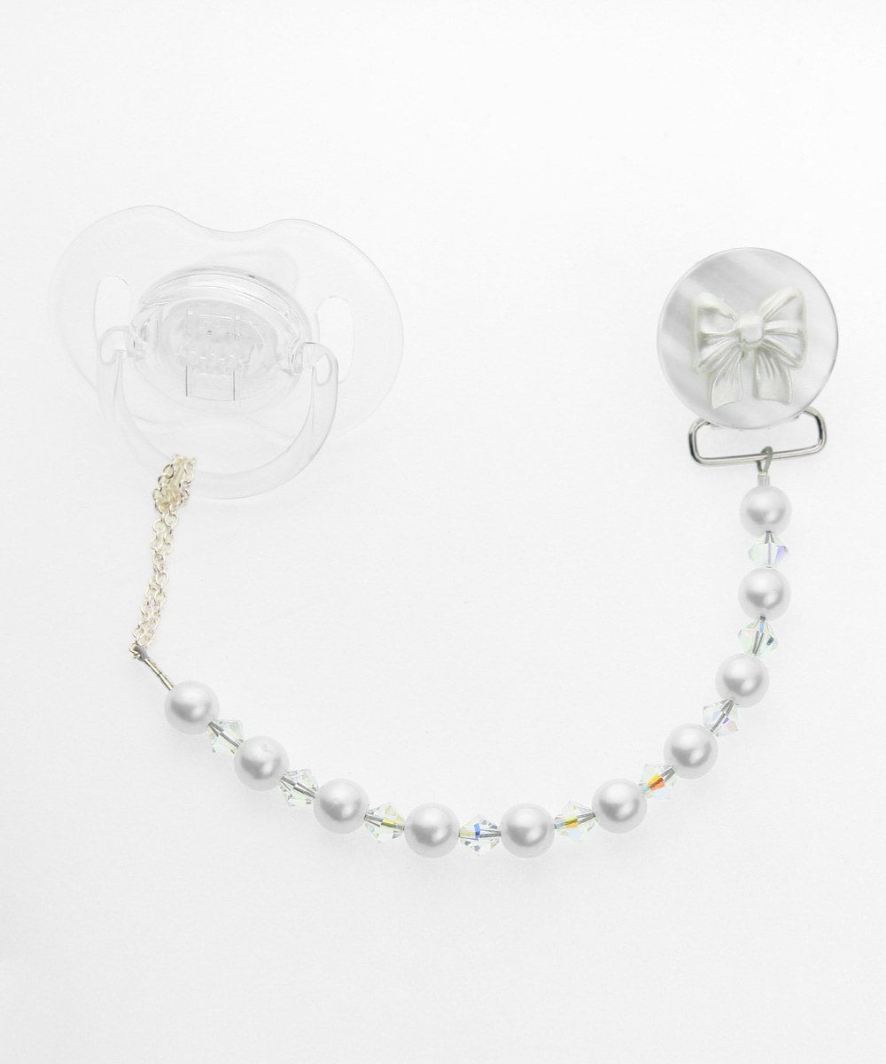Baby European Pearls and Crystals Pacifier Clip with Bow (C16, C16-P)
