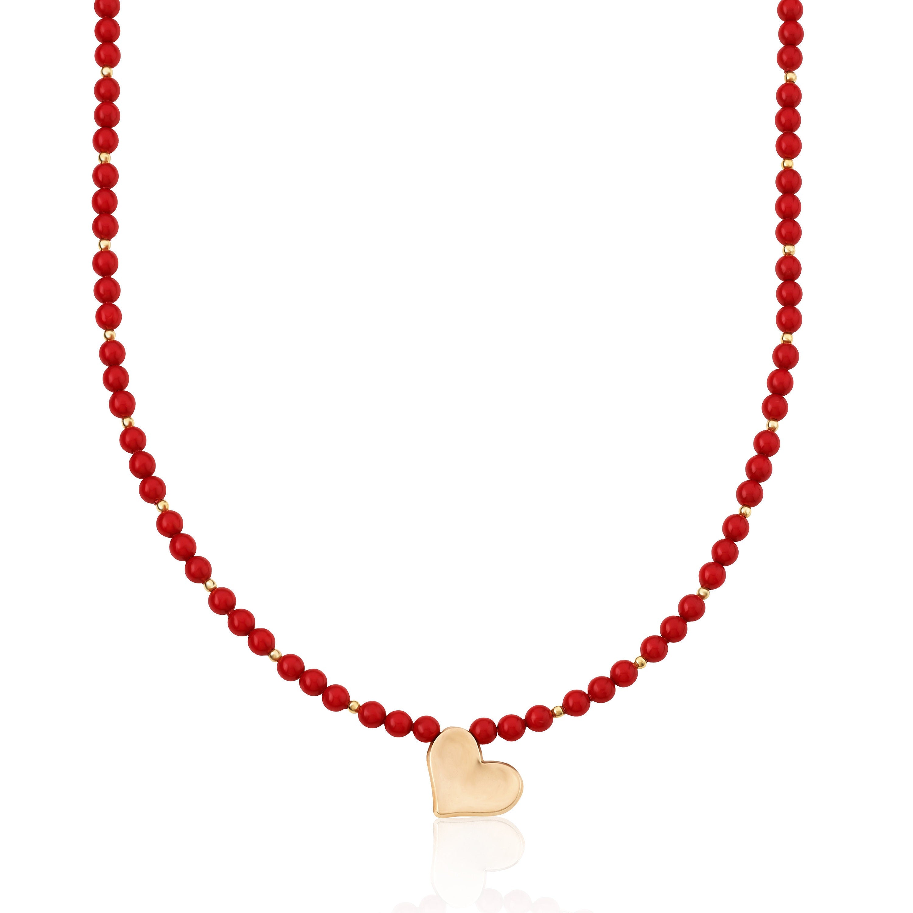 This magnificent necklace is handmade using rose beads, red European pearls and rose gold heart charm.
