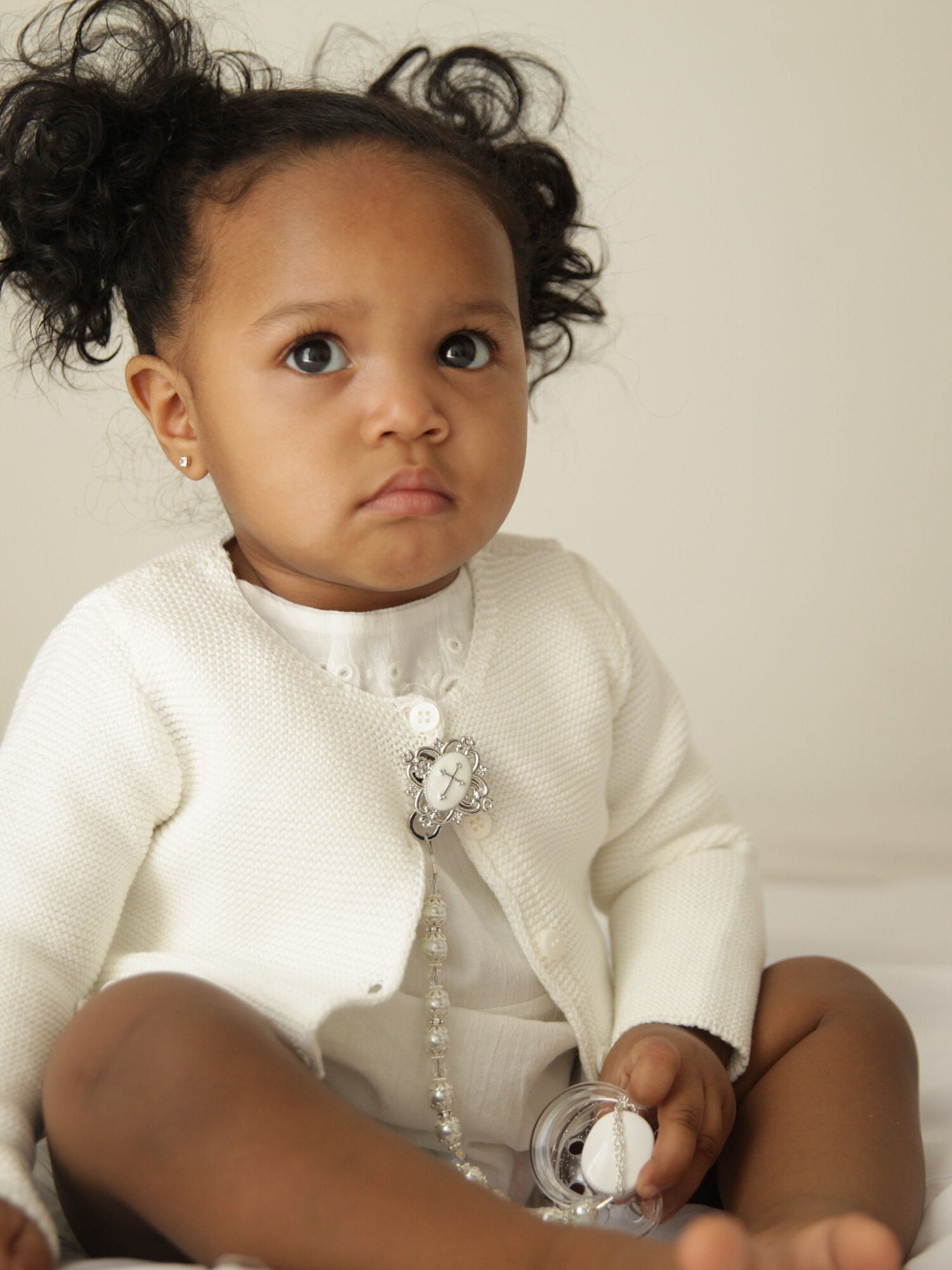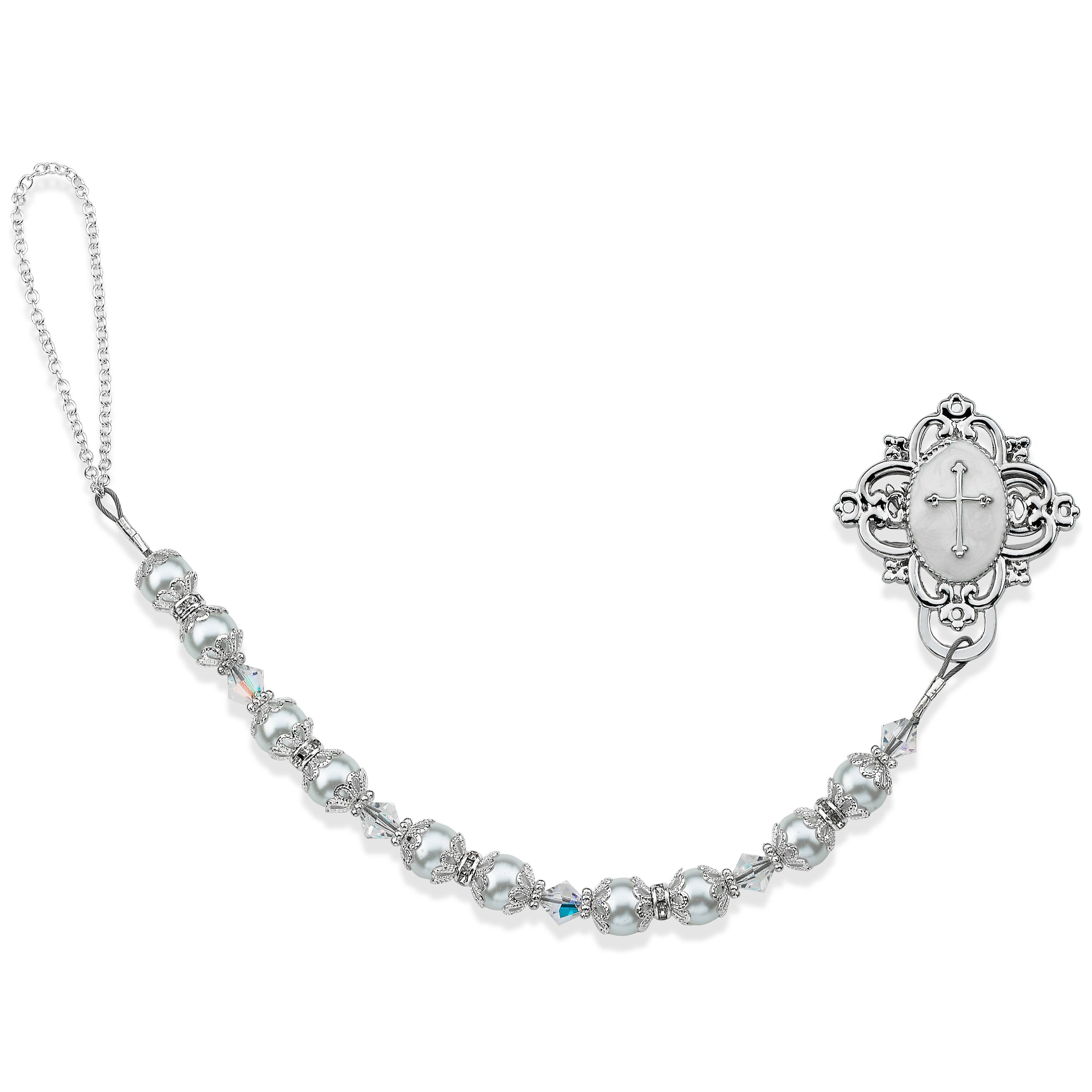Baptism Gift, Pearl Pacifier Clip, Baby Christening Gift, Cross, Goddaughter Godson White and Very Blingy Silver Accents (CCRS) MSRP 39.00