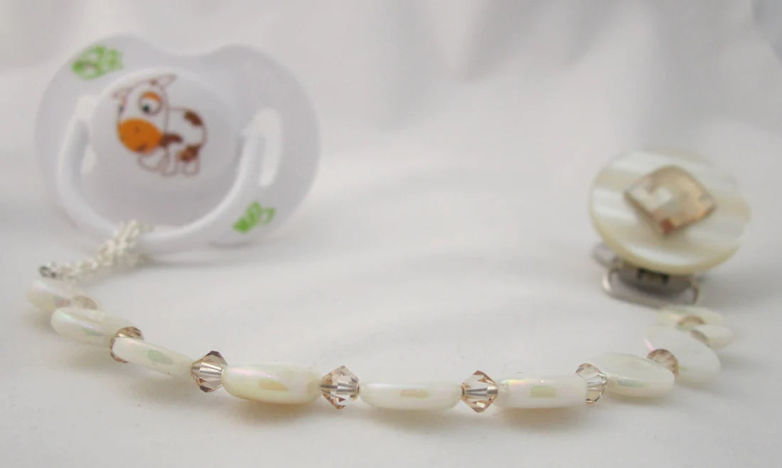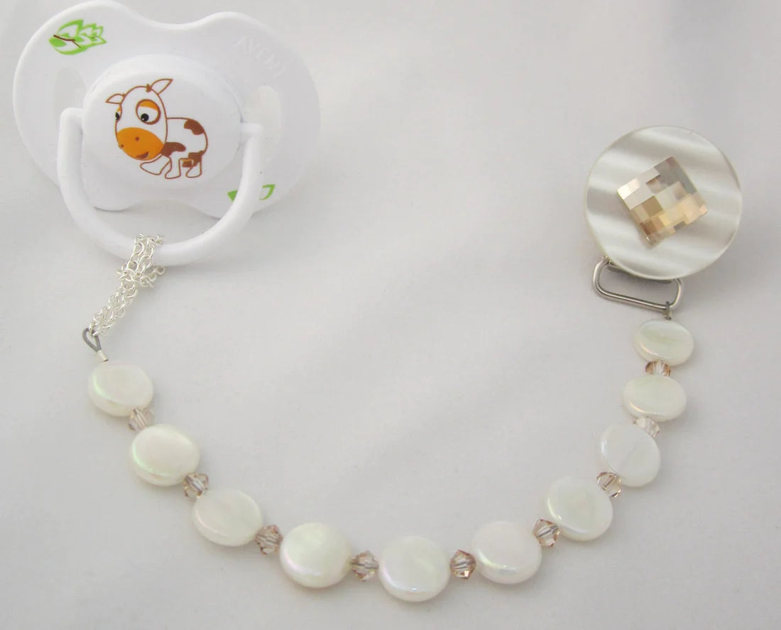 Blue, Beige Diamond Pacifier clip with Stunning Mother of Pearls (CMPB,CMPG)