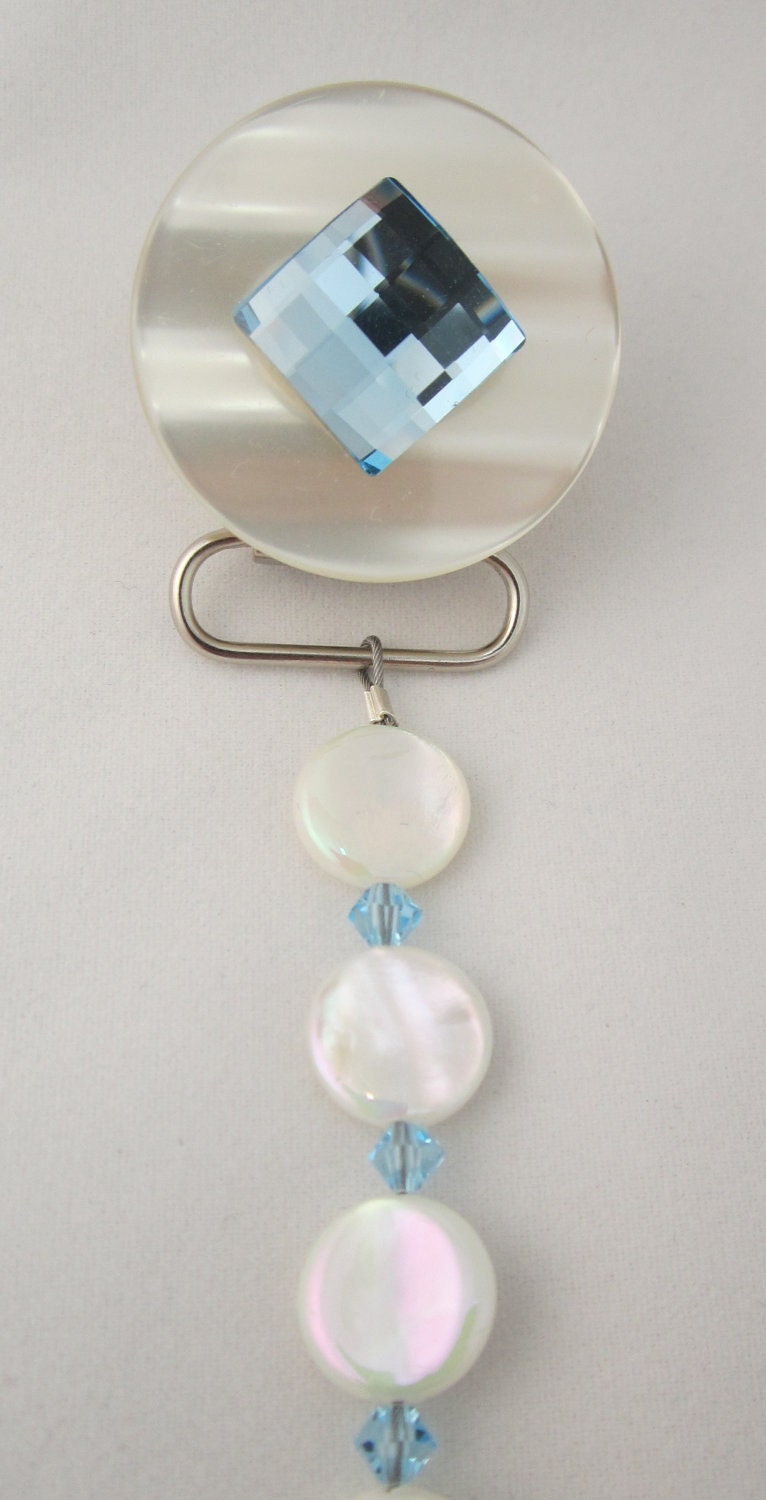 Adorable Blue Beige Diamond pacifier clip is accented with Stunning Mother of Pearls.