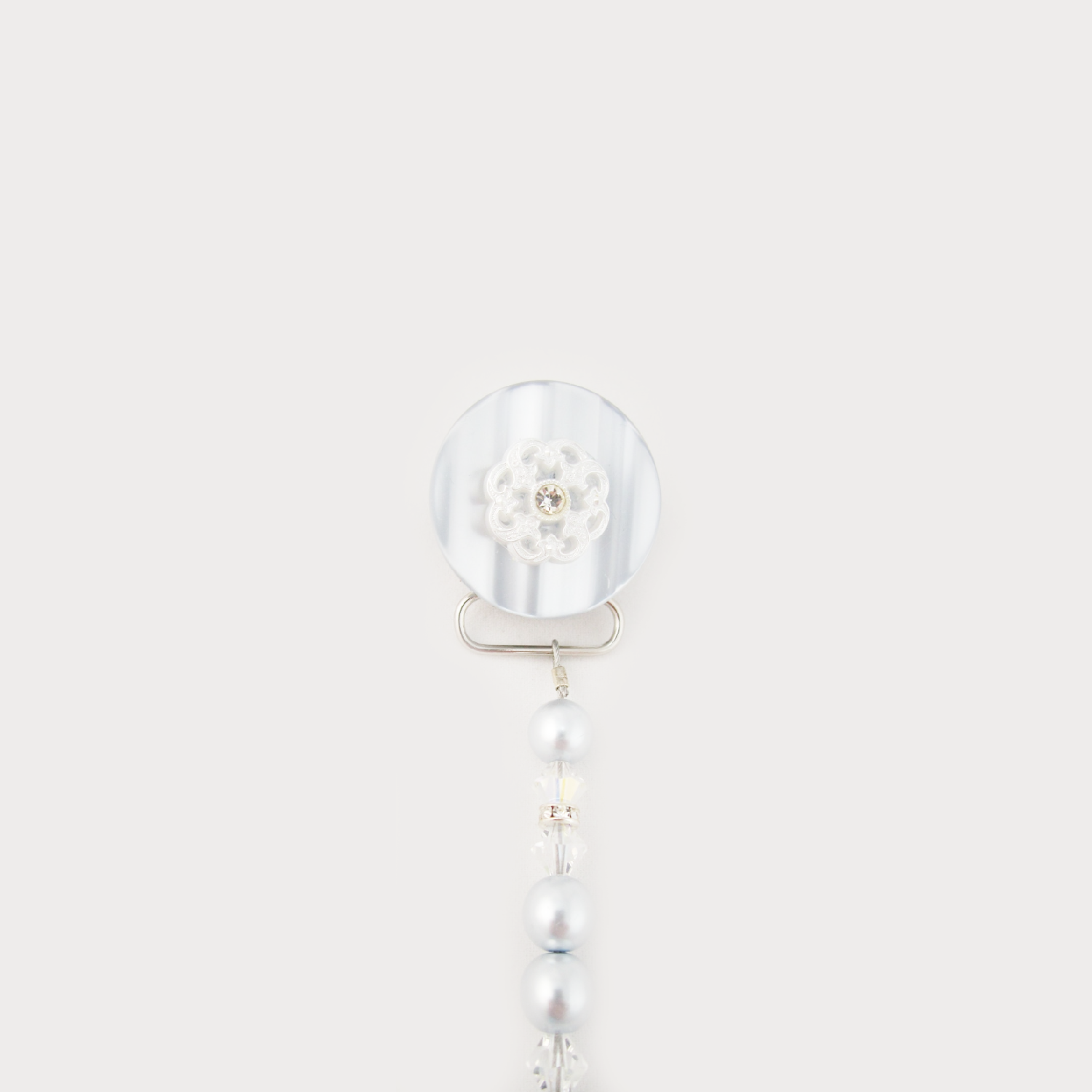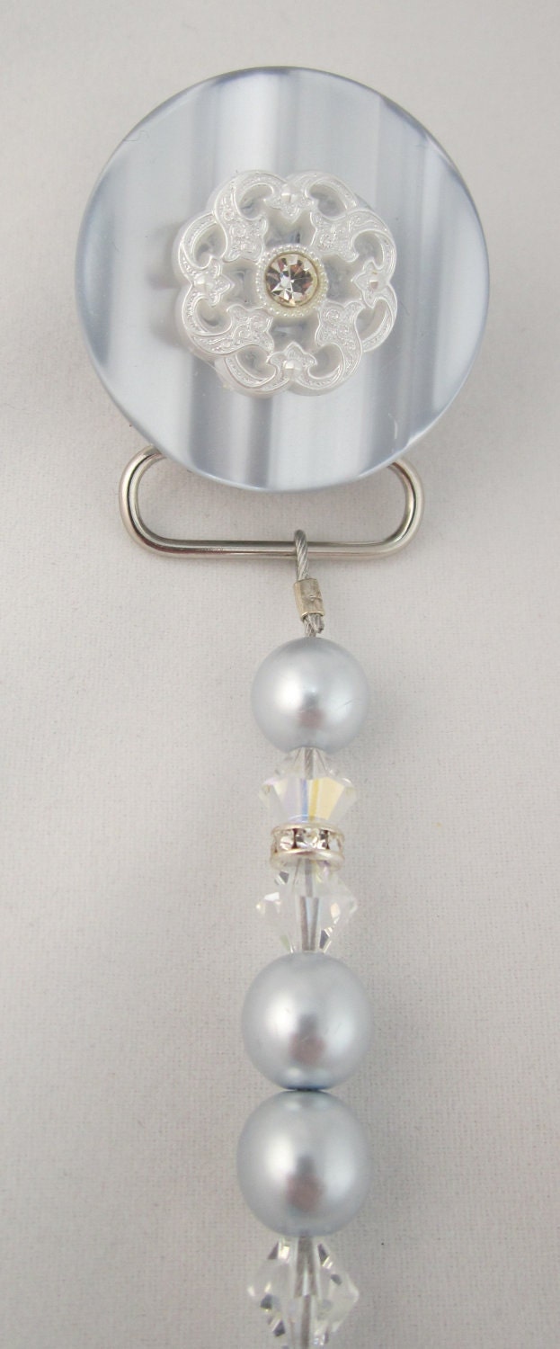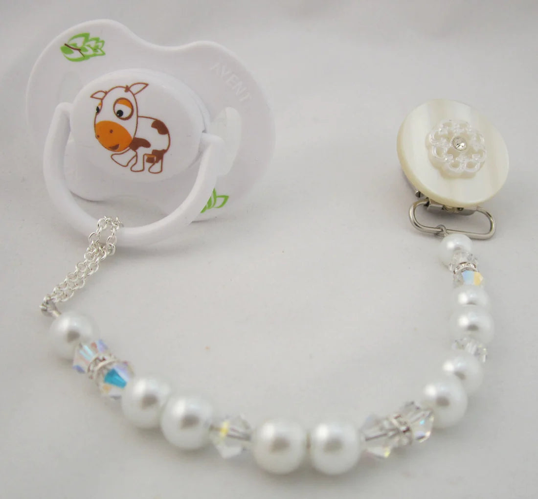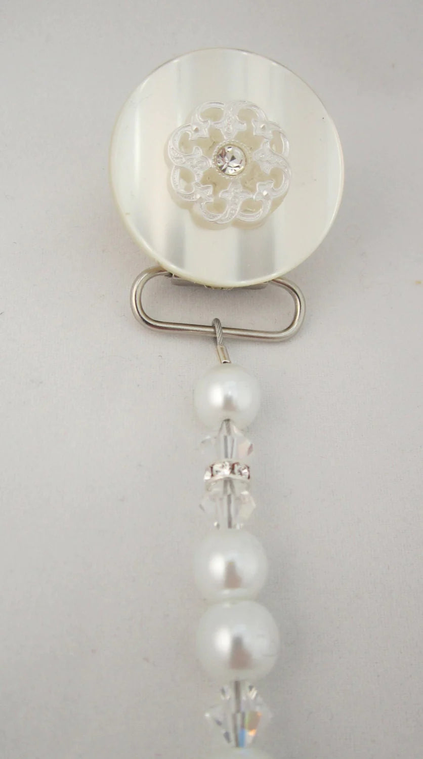 Lacy Flower Pacifier clip with Stunning Pearls and Crystals (CLB, CLW)