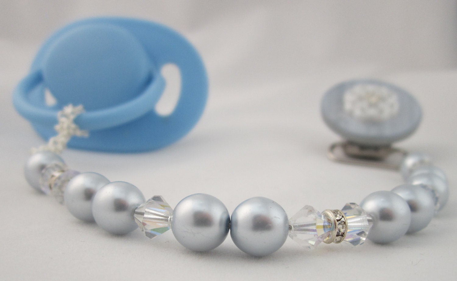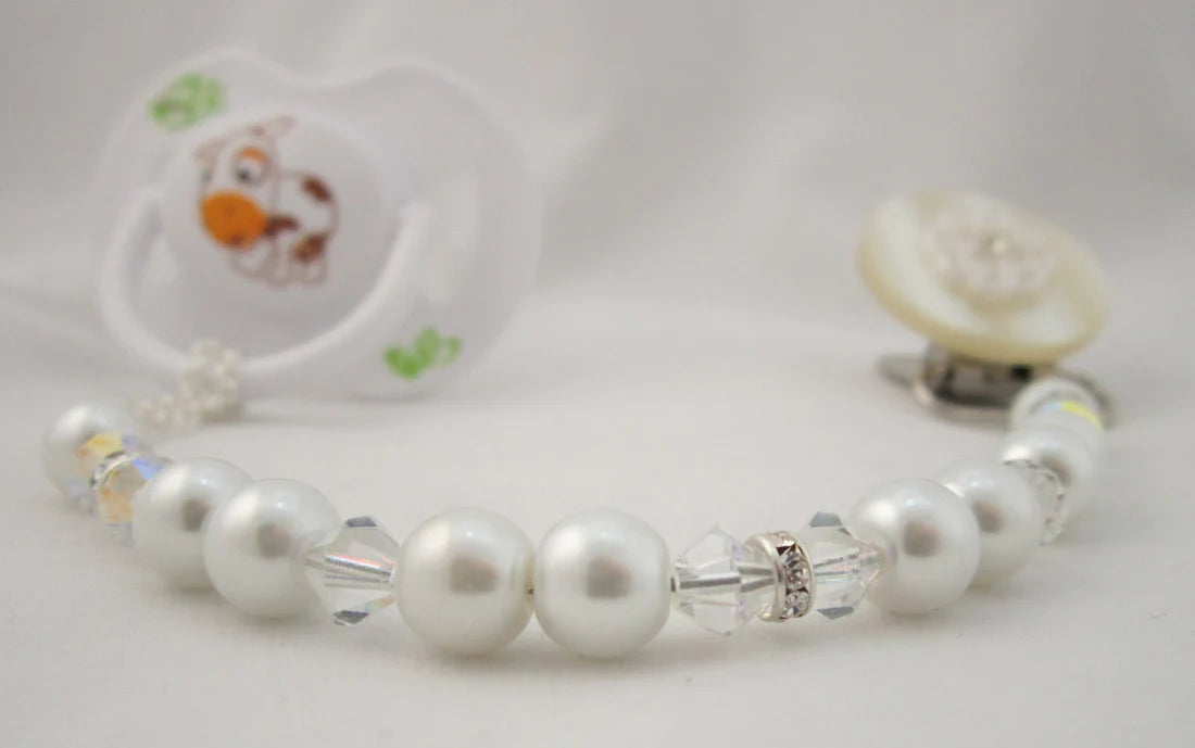 This clip fits all major brands of pacifiers. The beads are strung on 49 Strands of jewelry wire. Each end is triple-secured to guarantee quality and safety. Our team of Professionals Secure and Check each Clip Individually, The Beads are selected from a wide variety, to ensure that we bring you a safe, secure and Stunning Pacifier Clip.