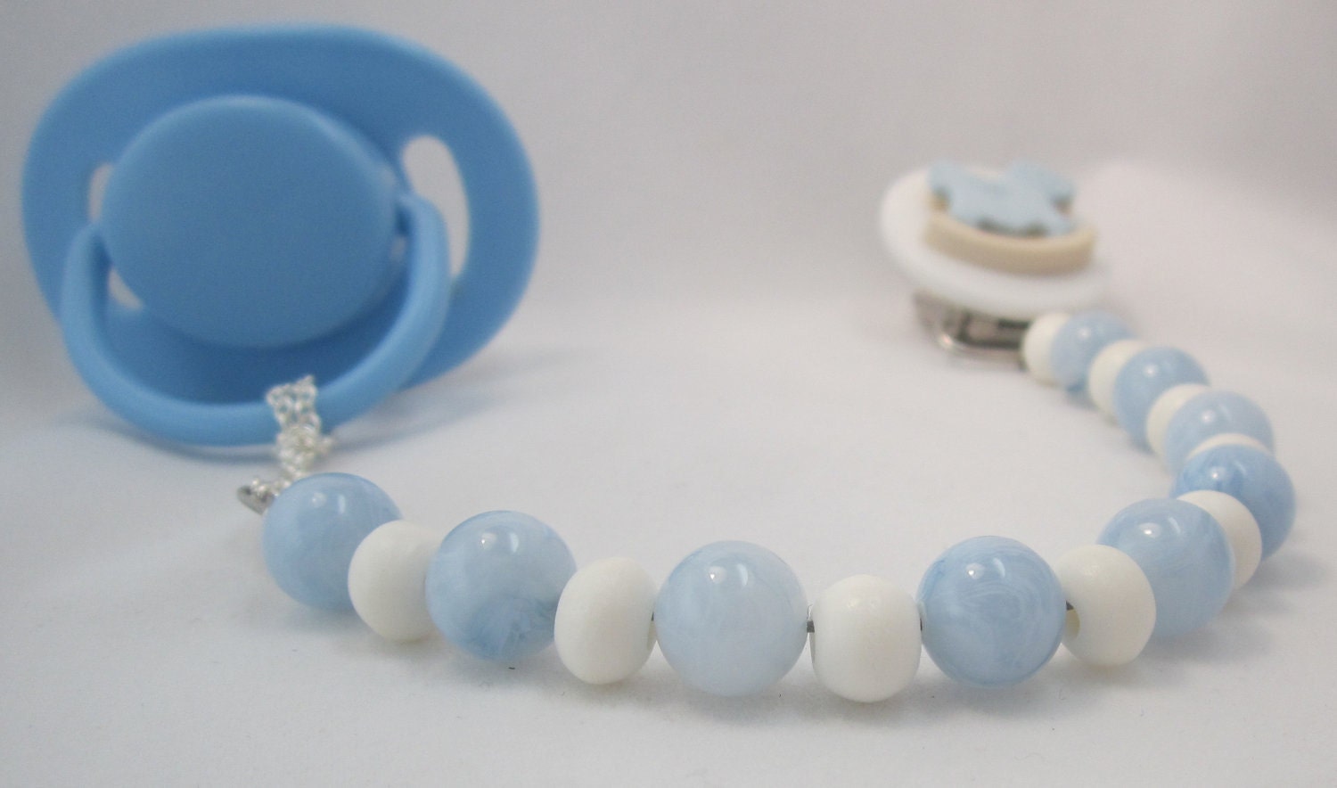 This clip fits all major brands of pacifiers. The beads are strung on 49 Strands of jewelry wire. Each end is triple-secured to guarantee quality and safety. Our team of Professionals Secure and Check each Clip Individually, The Beads are selected from a wide variety, to ensure that we bring you a safe, secure and Stunning Pacifier Clip.