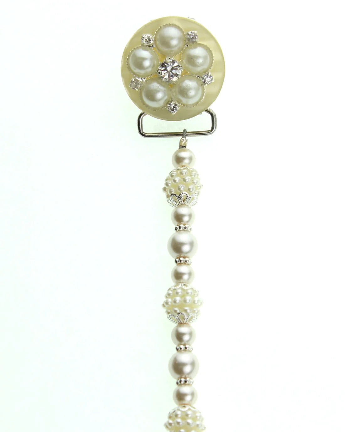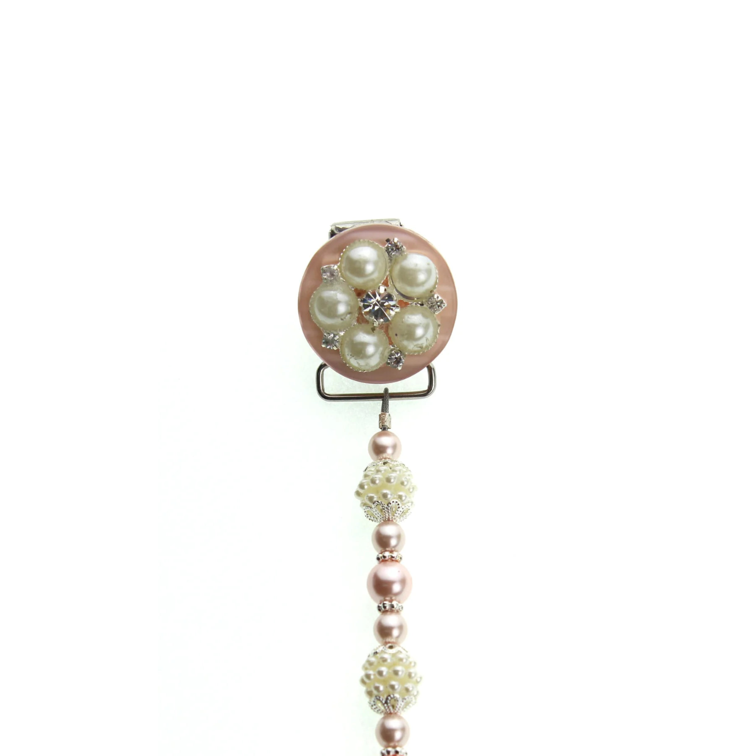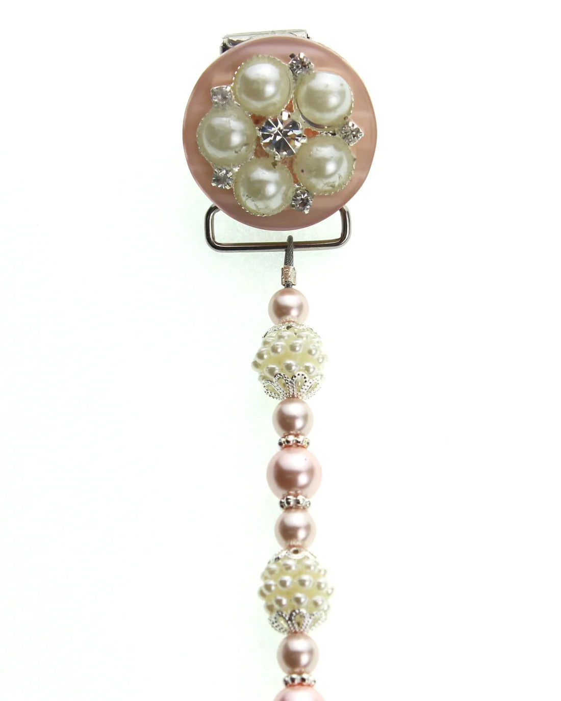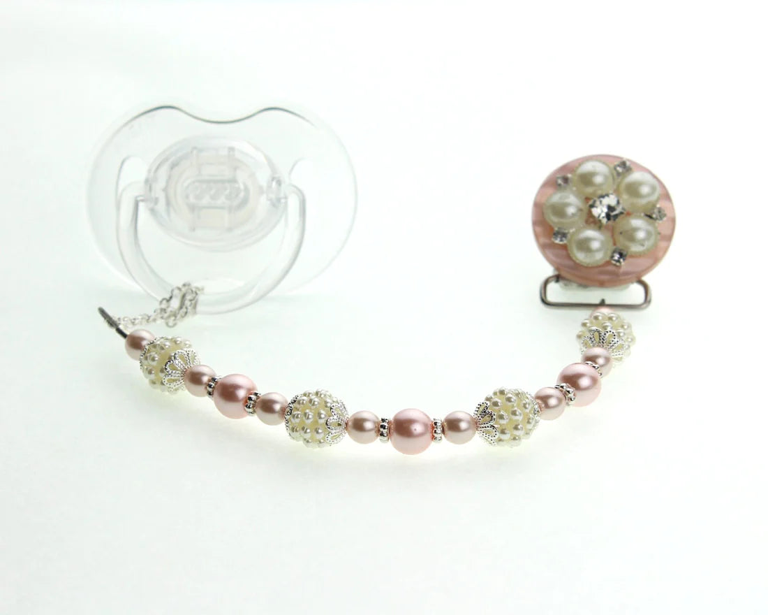 Blue, Pink, Cream Vintage Flower and Pearl Pacifier Clip