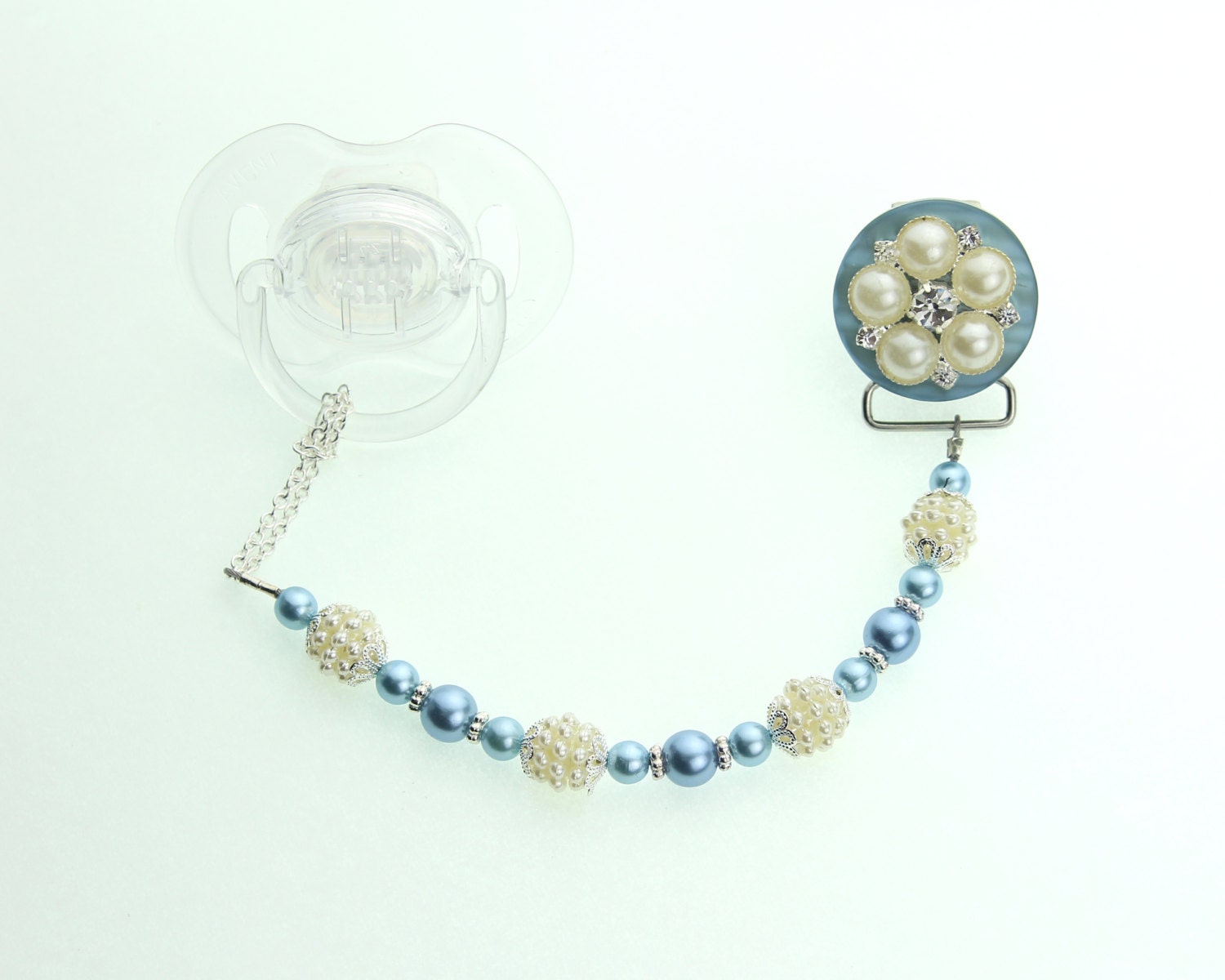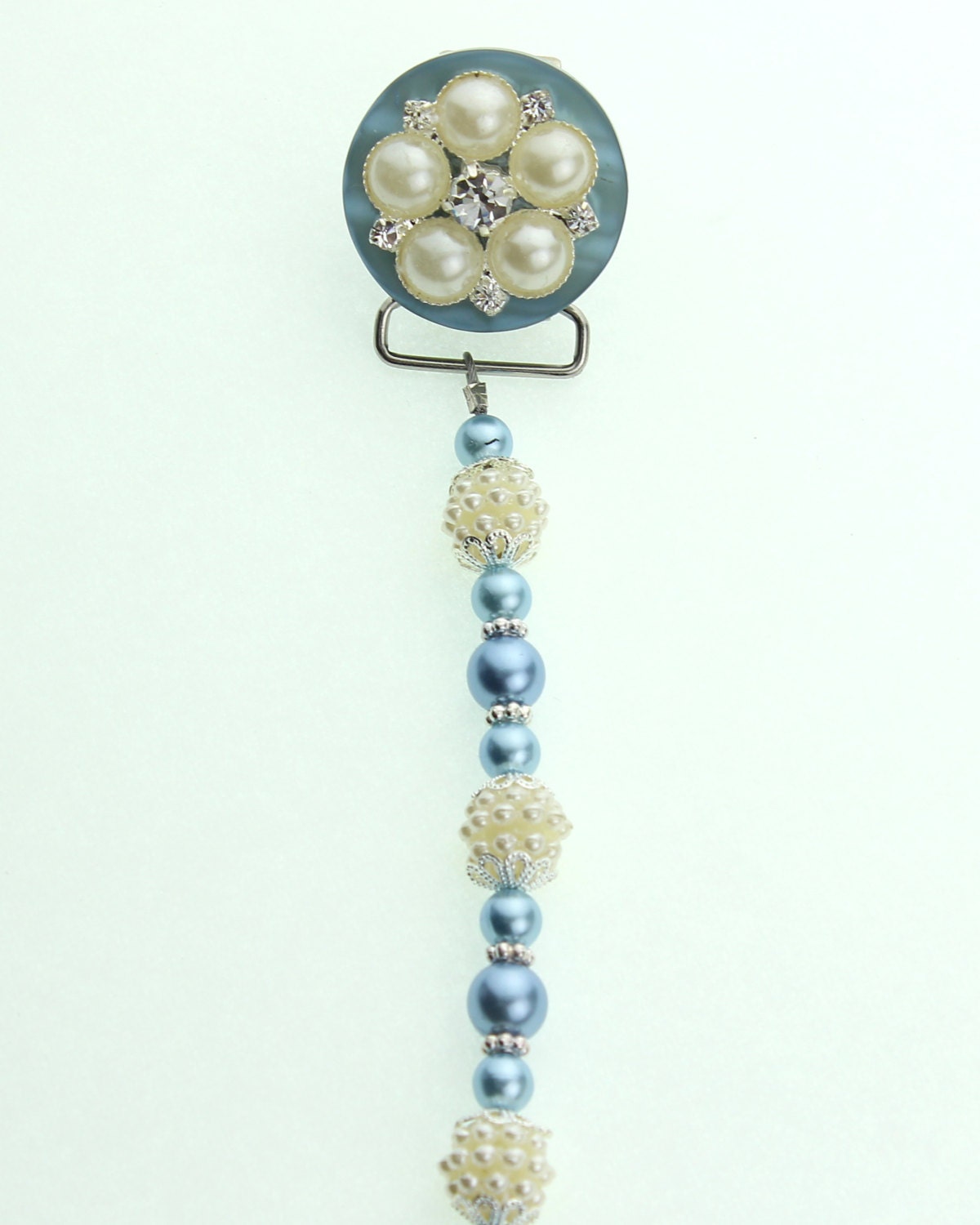 Blue Vintage Flower and Pearl Pacifier Clip