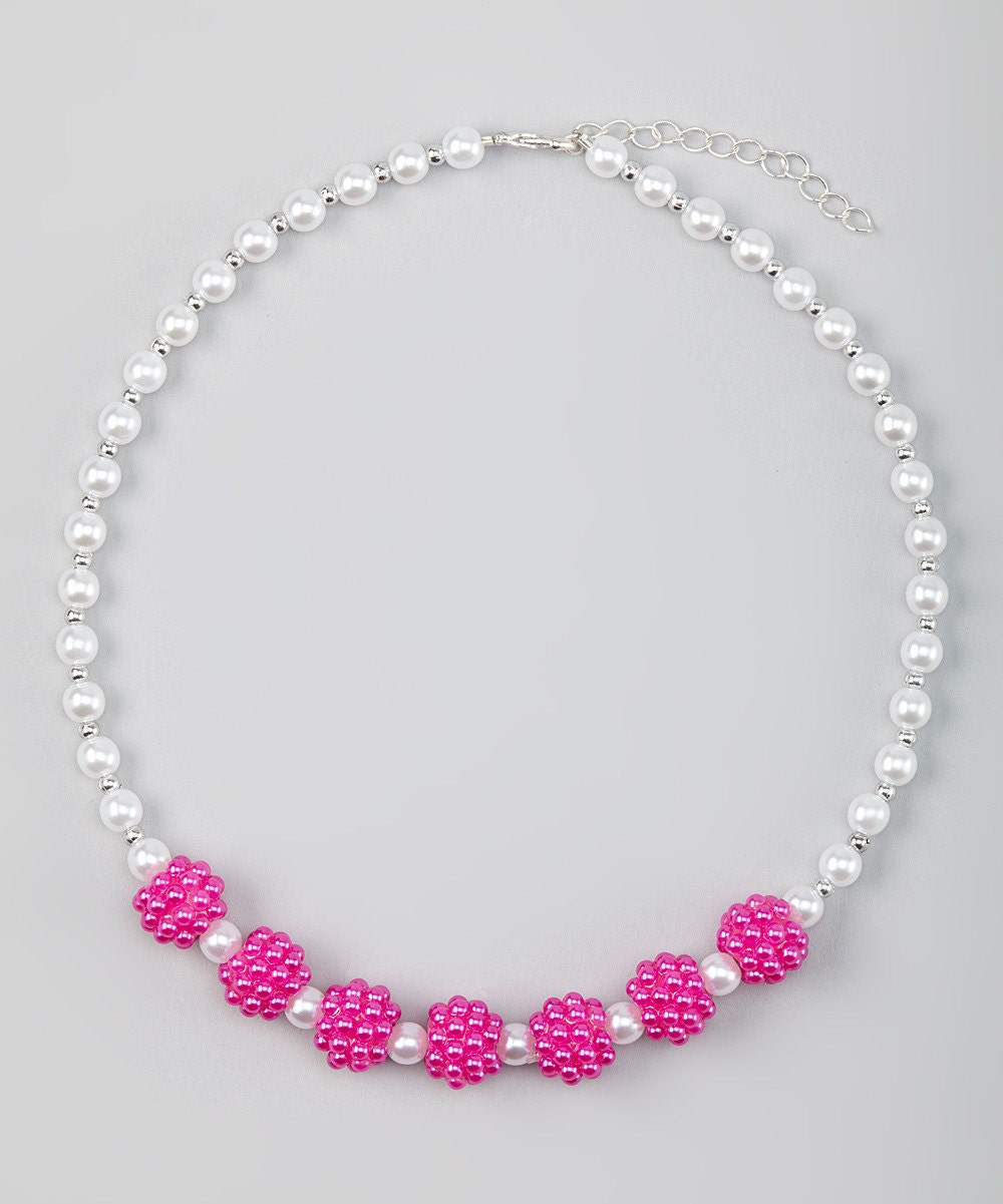 Chunky Hot Pink with White Pearl Toddler , Child Necklace (TN1-HP)