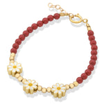 This Bracelet will look like a million on your baby's hand. It is made of red and 14kt gold filled beads and with 3 daisy flower charms.