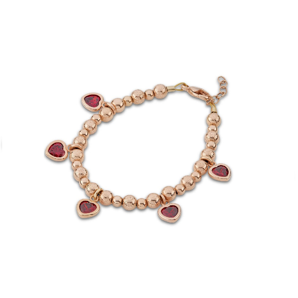 14kt rose gold beads with multiple ruby heart charms child's bracelet (B2134-M)