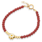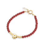 This Bracelet will look like a million on your baby's hand. It is made of red and 14kt gold filled beads and with 1 daisy flower charm.