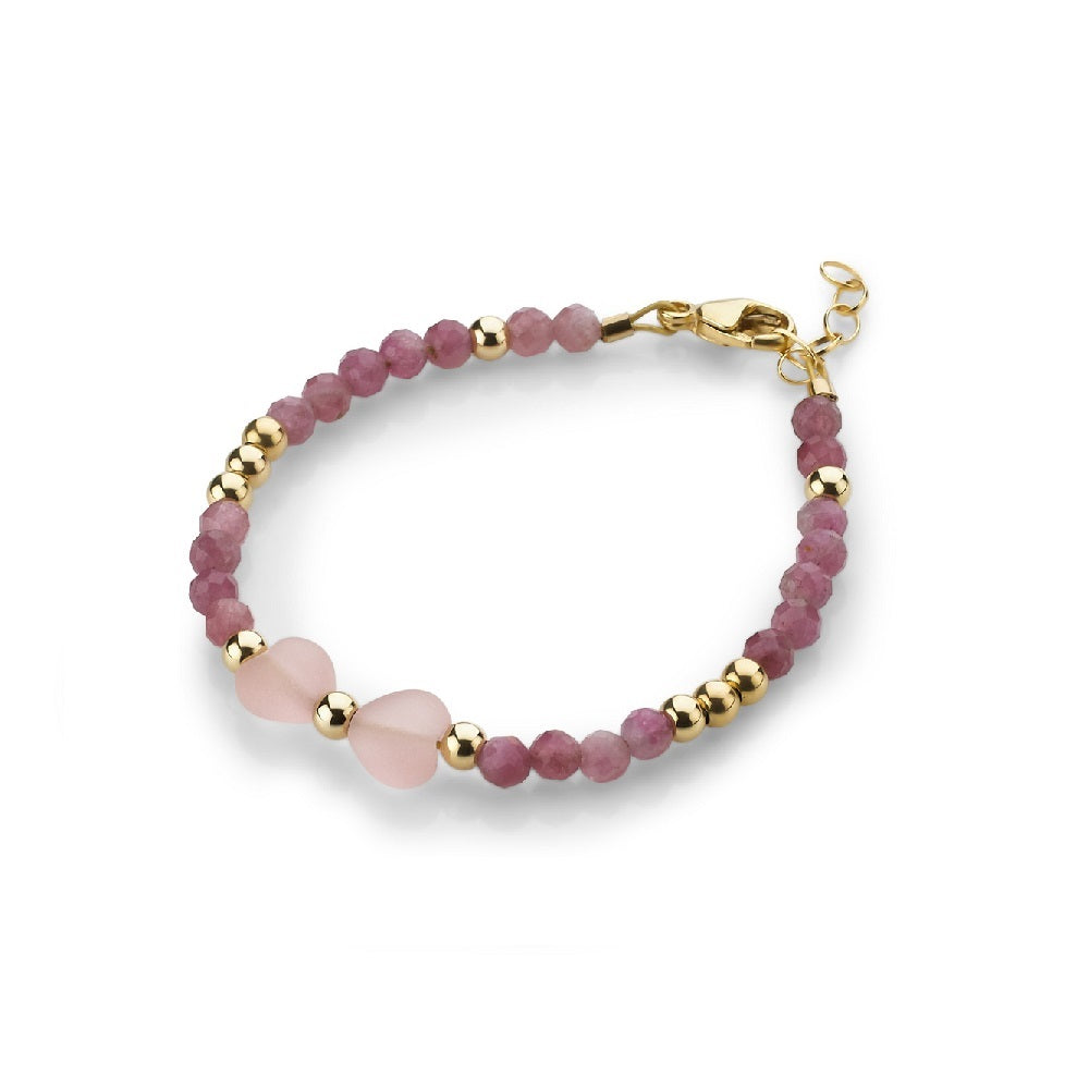 Elegant Baby Bracelet With Pink Tourmaline Beads, Pink Hearts, 14kt Gold Filled Beads (B2108)