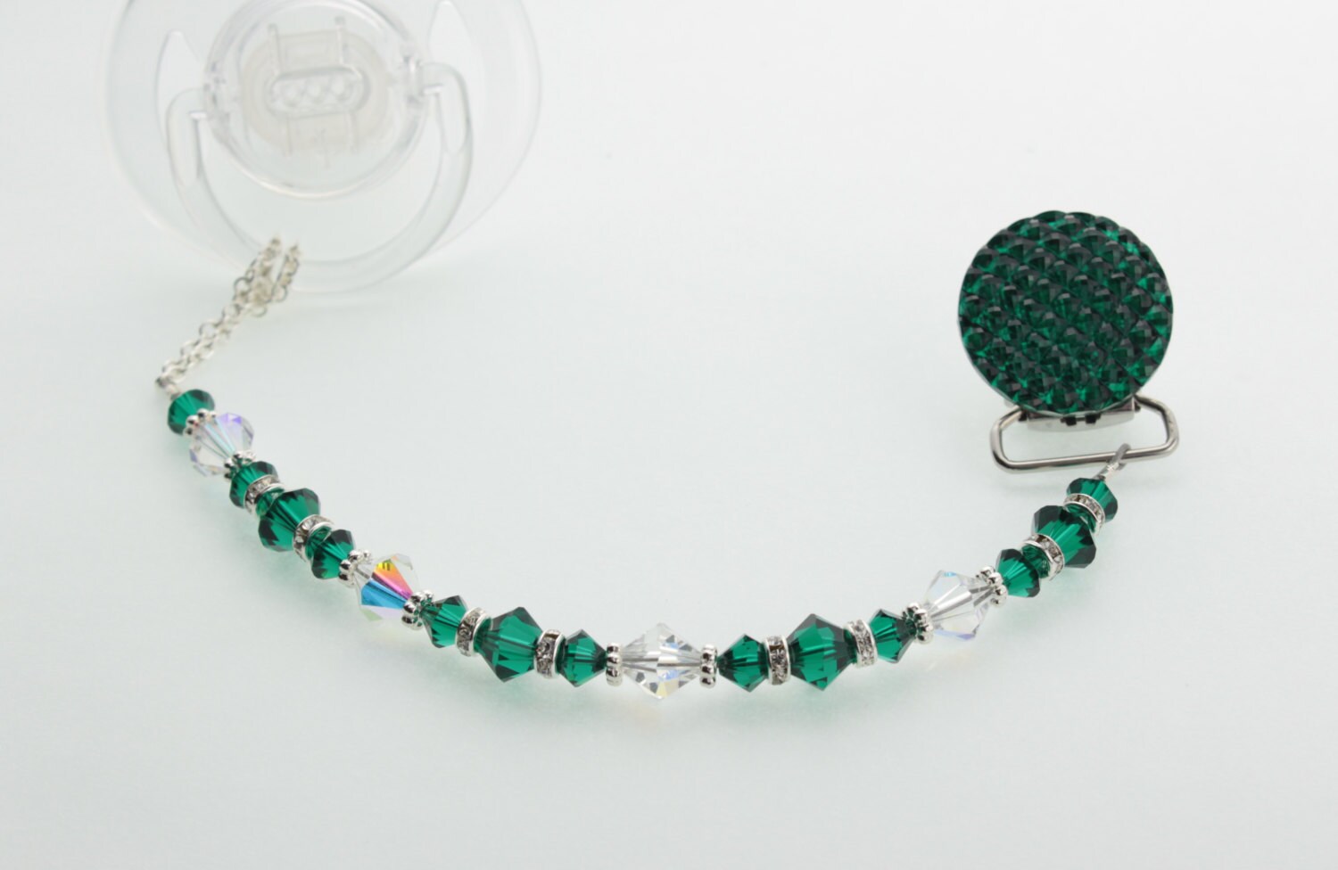 Emerald Beaded Baby Exquisite very sparkly Pacifier Clip