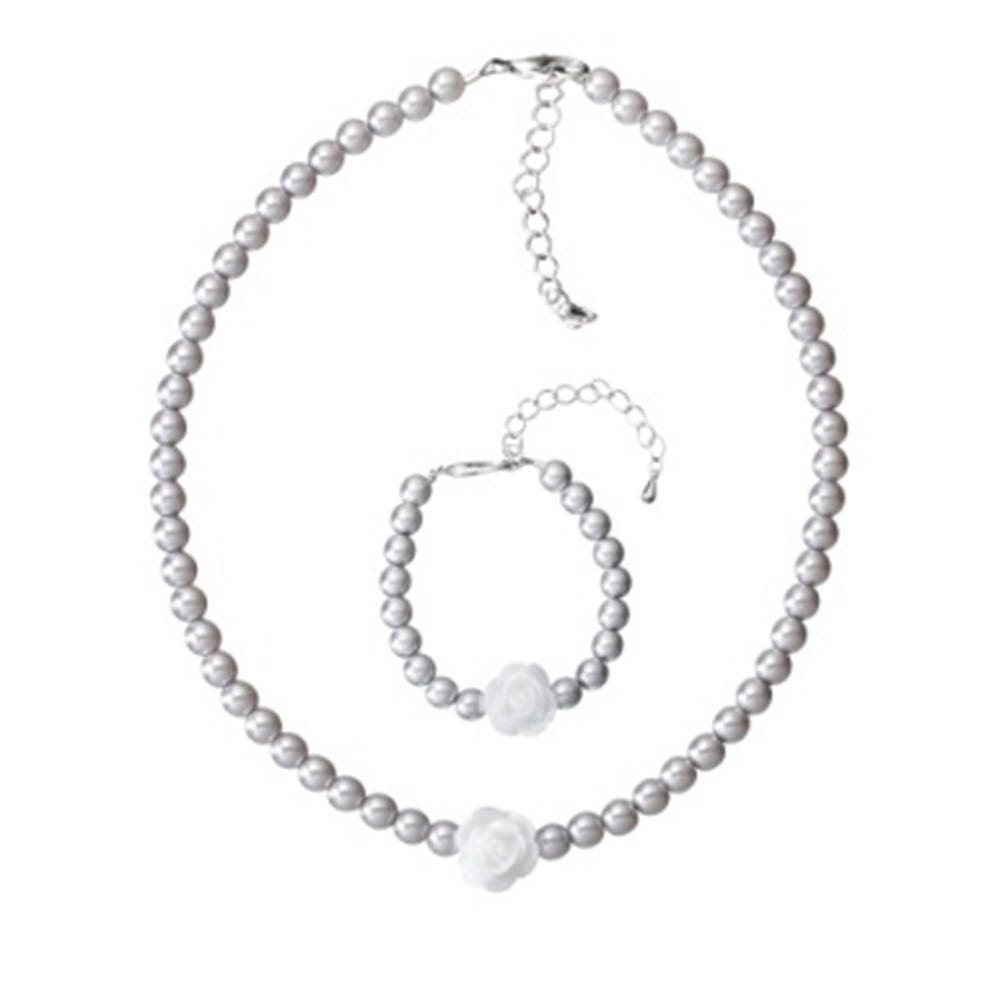 Gray Czech Glass Pearls with Resin Flower Handmade Bracelet and Necklace Gift Set (GSNB38)