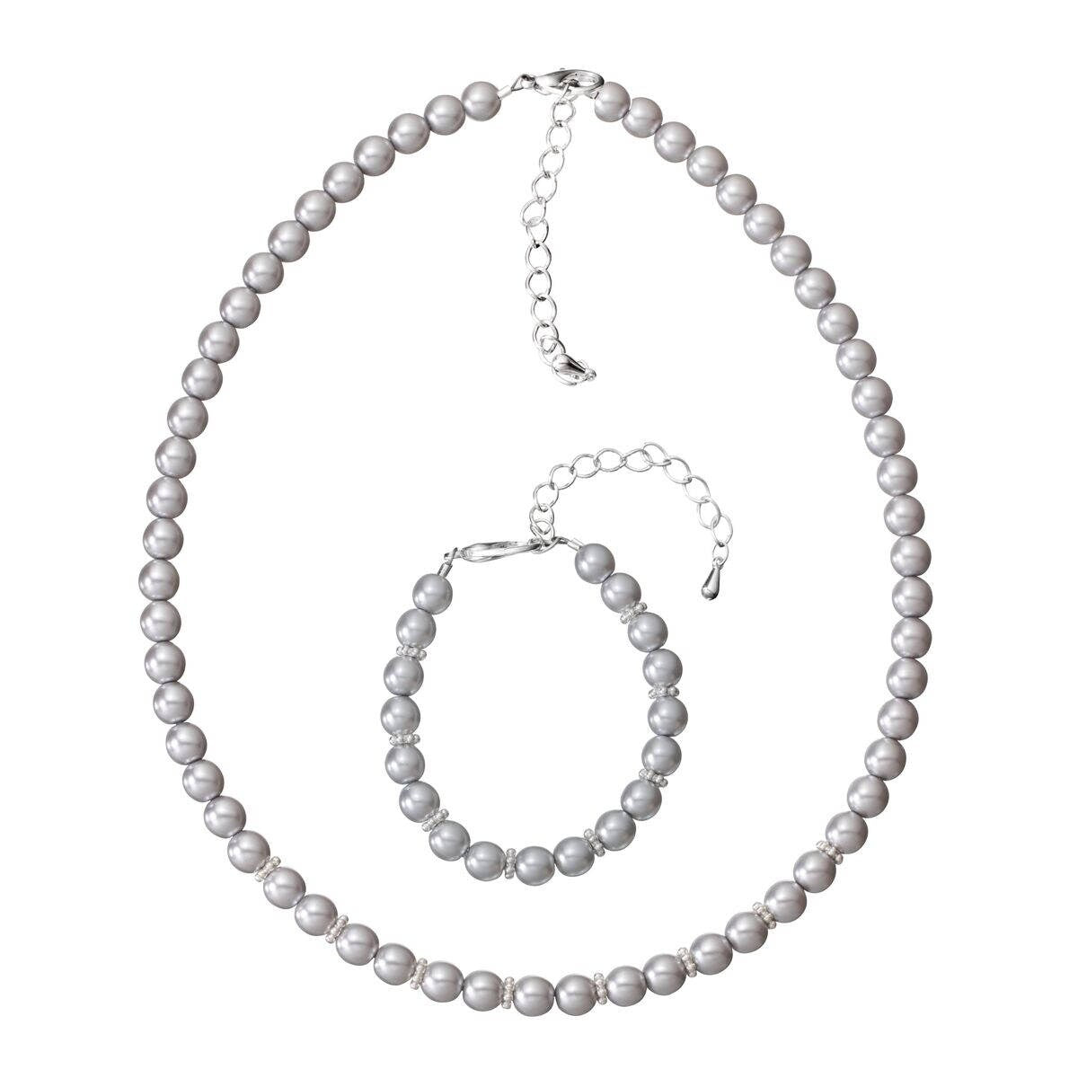 Gray Czech Glass Pearls with Silver Daisies Handmade Child Bracelet and Necklace (GSNB43)