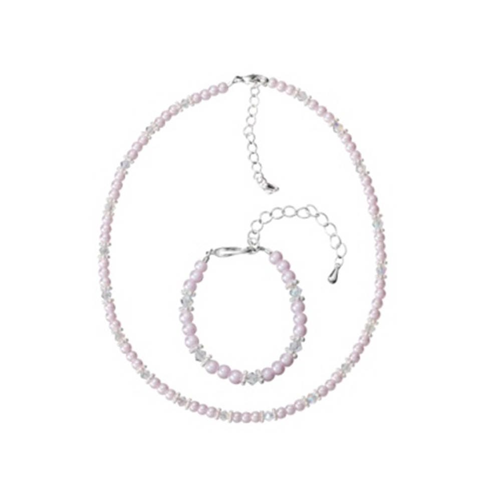 Light Pink Czech Glass Pearls and Crystals Handmade Bracelet and Necklace Gift Set (GSNB33)