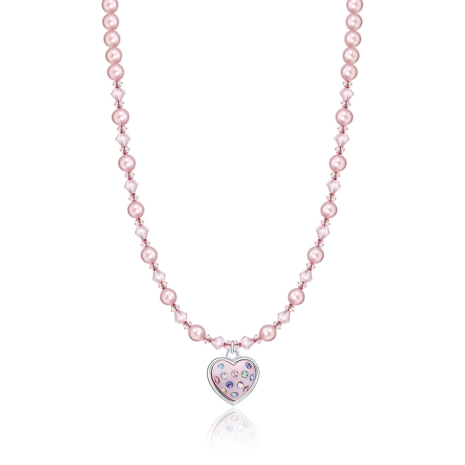 Light Pink Heart Pearl Sterling Silver Necklace