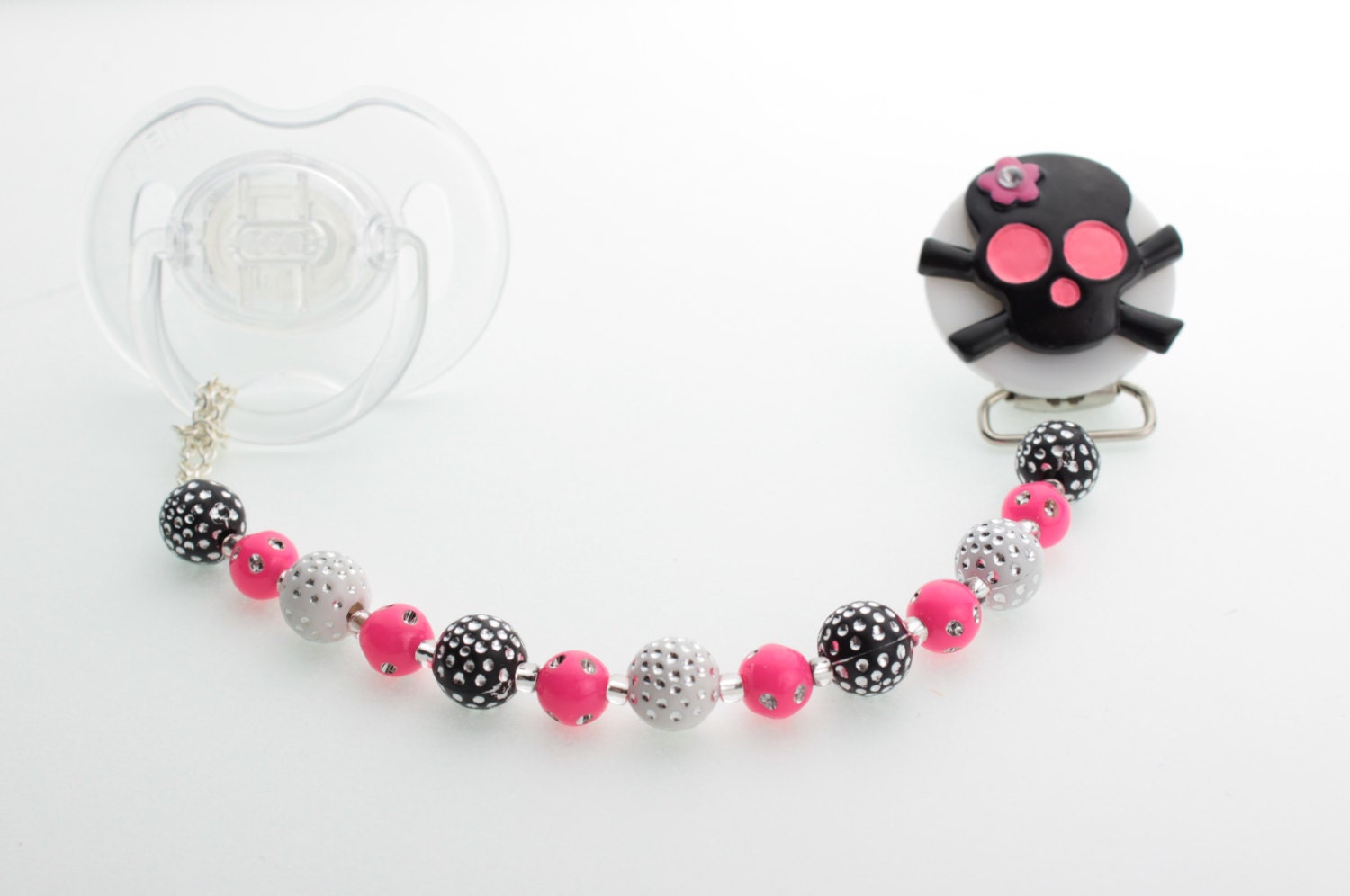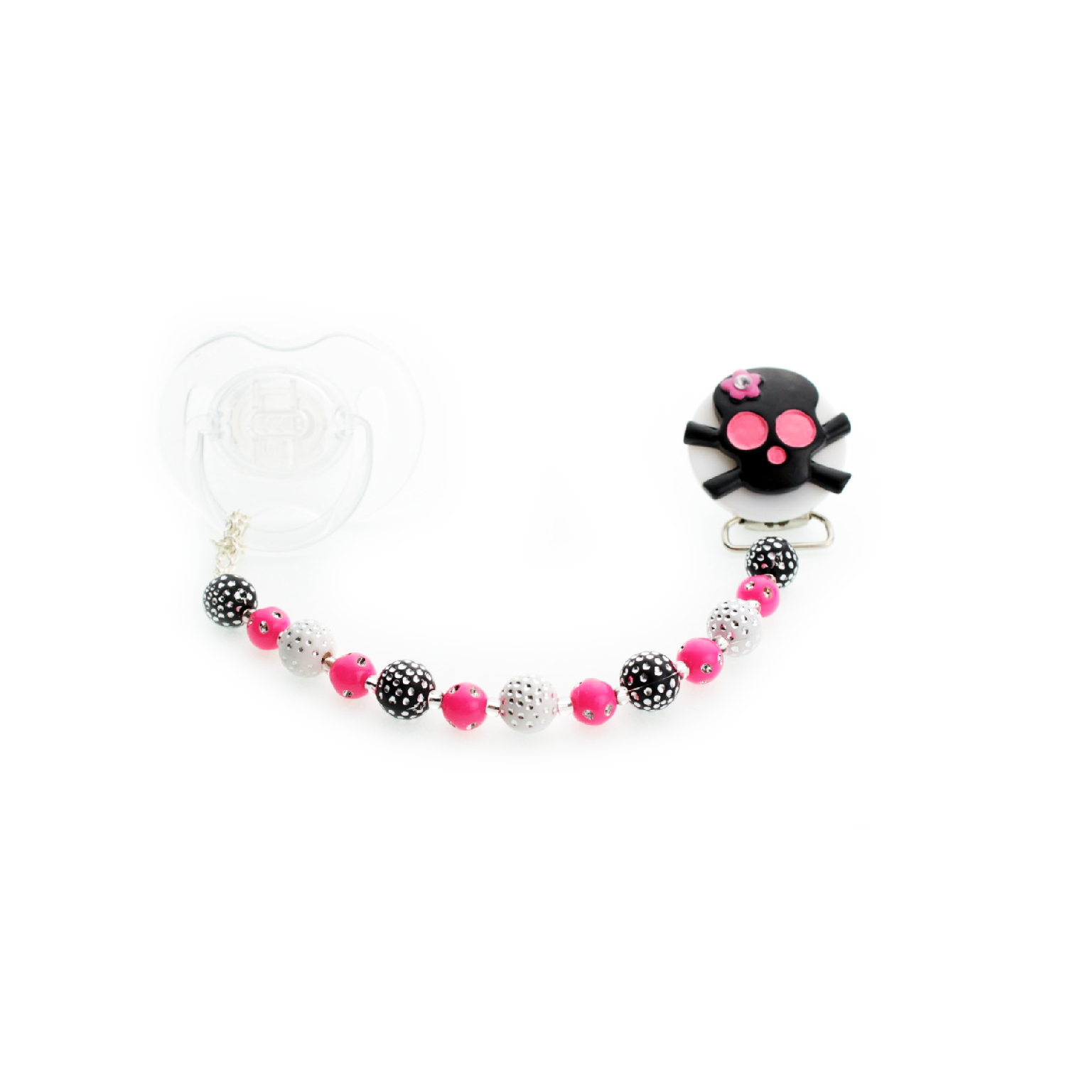 Pacifier clip, skull pacifier clip, pacifier clip, (CSKHP)