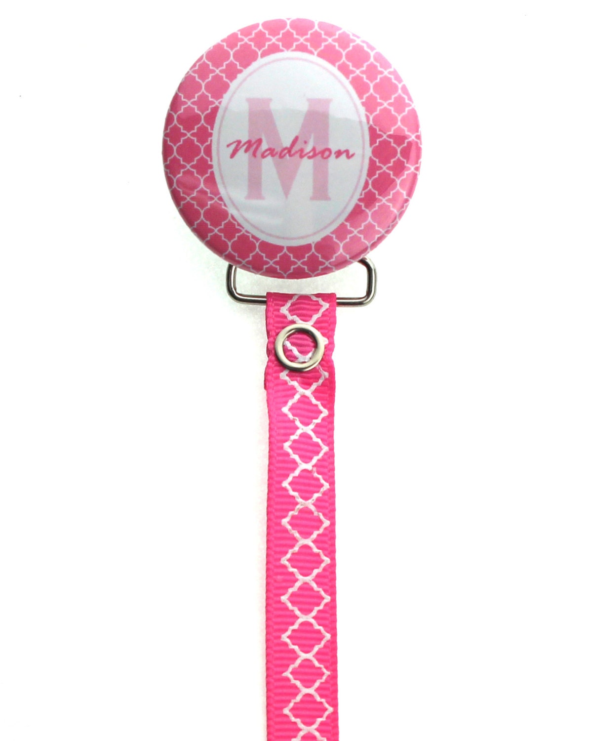 Personalized Name Hot Pink Moroccan Tile Pacifier Clip (PER63) (MSRP 19.00)
