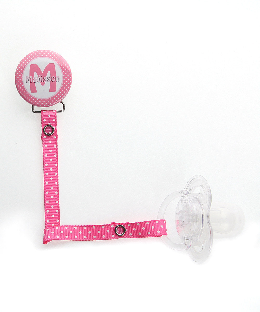 Personalized Name Polka Dot , Girl Pacifier Clip (PER 31-34)