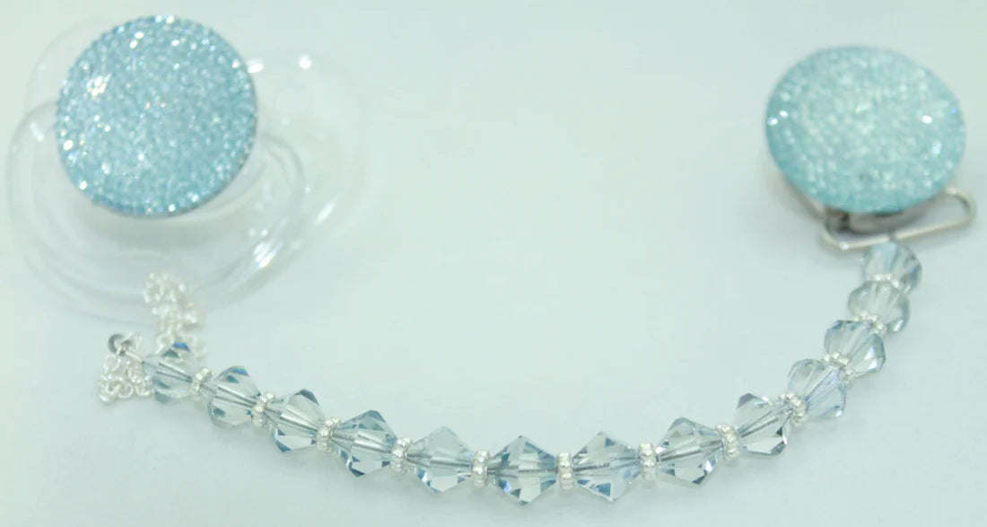 Pink, Blue, Clear Sparkly Glitter with European Crystals Pacifier Clip (CSGP,CSGB,CSGC)