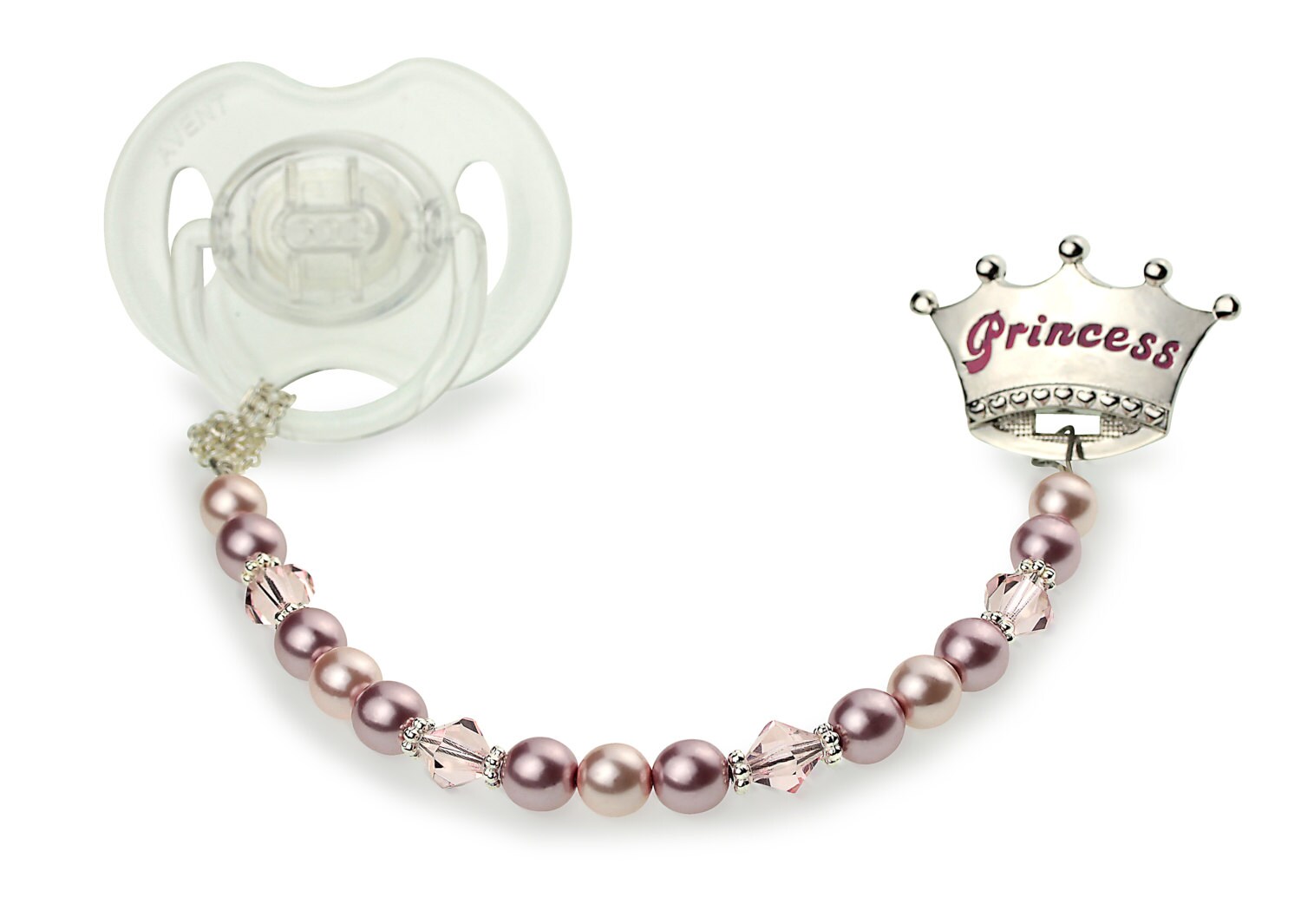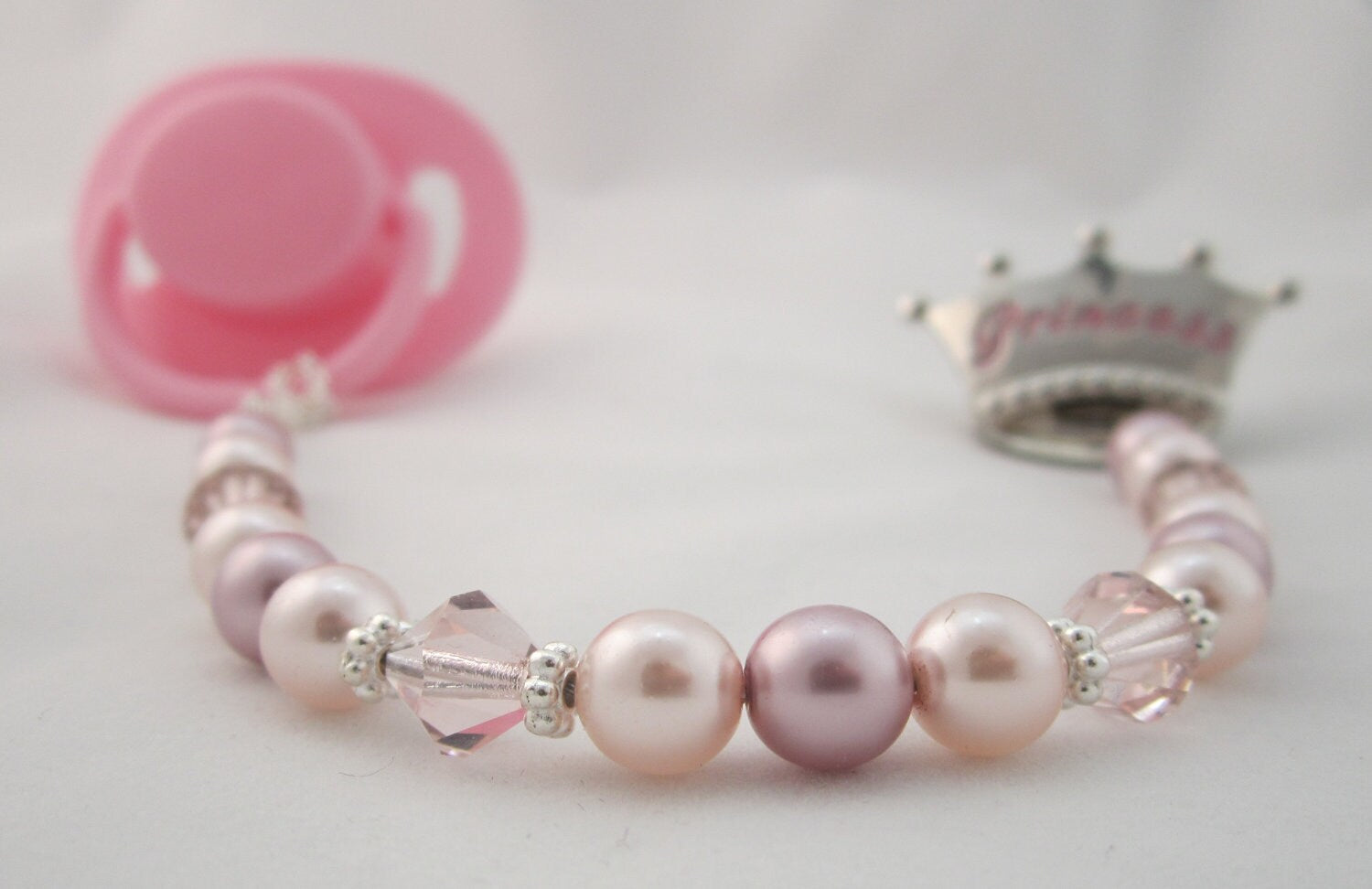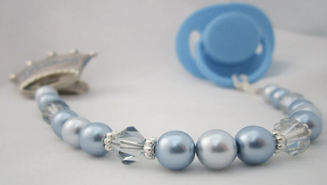 This Adorable Princ/Princess Pacifier clip is accented with Stunning Bling Beads and Pearls