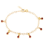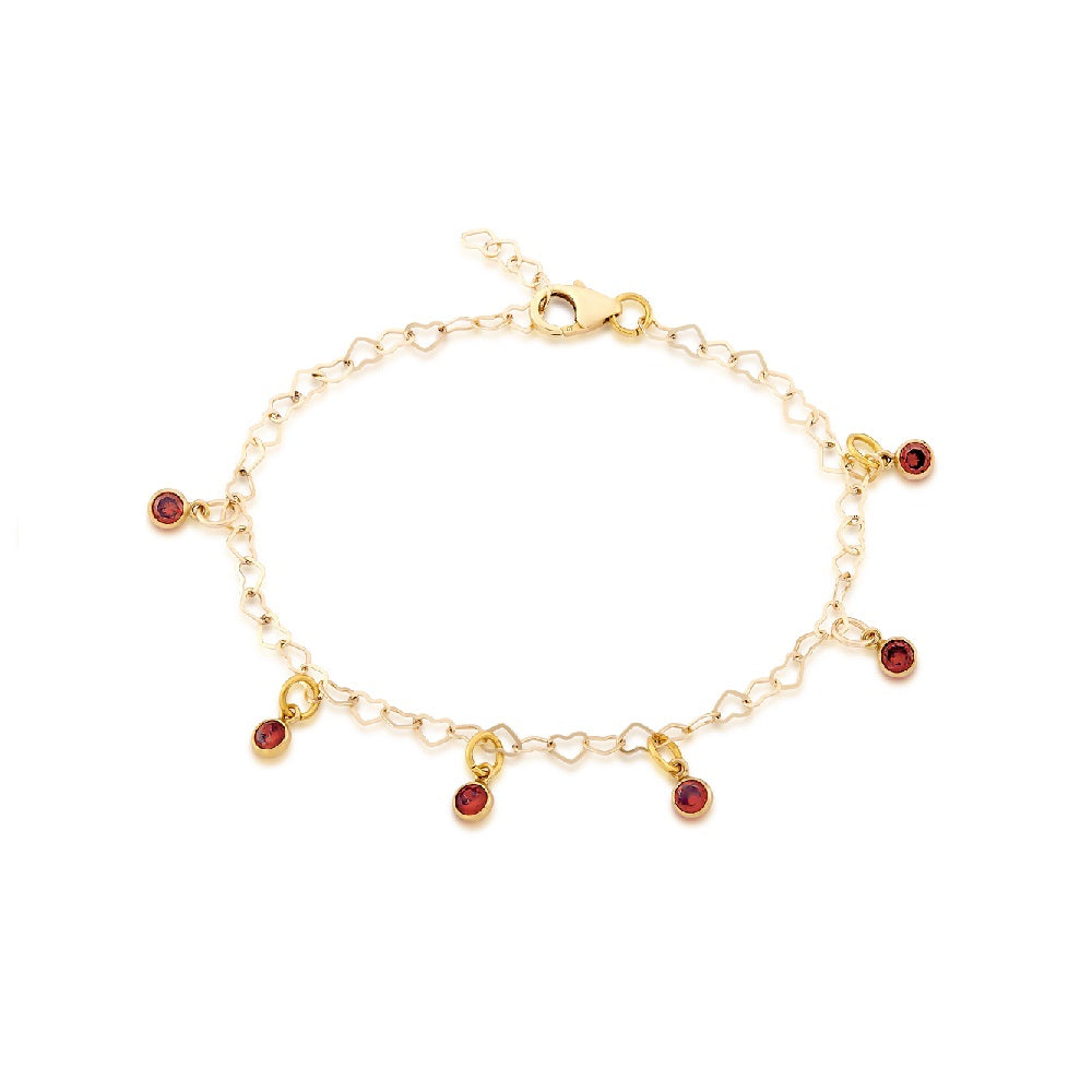 14k gold filled Heart shaped chain with multiple ruby charms, child bracelet (BC-3)