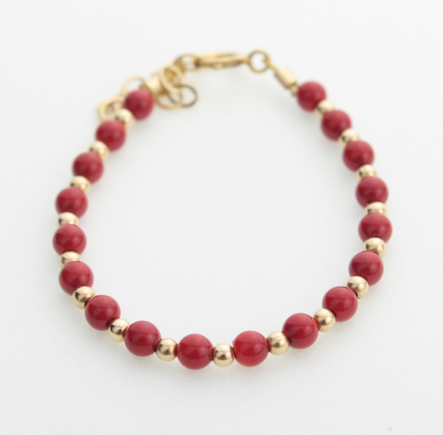 Red Coral BAby Bracelet, Dainty Stunning Bracelet perfect for Newborn from Red Coral Pearls and 14Kt goldfilled beads