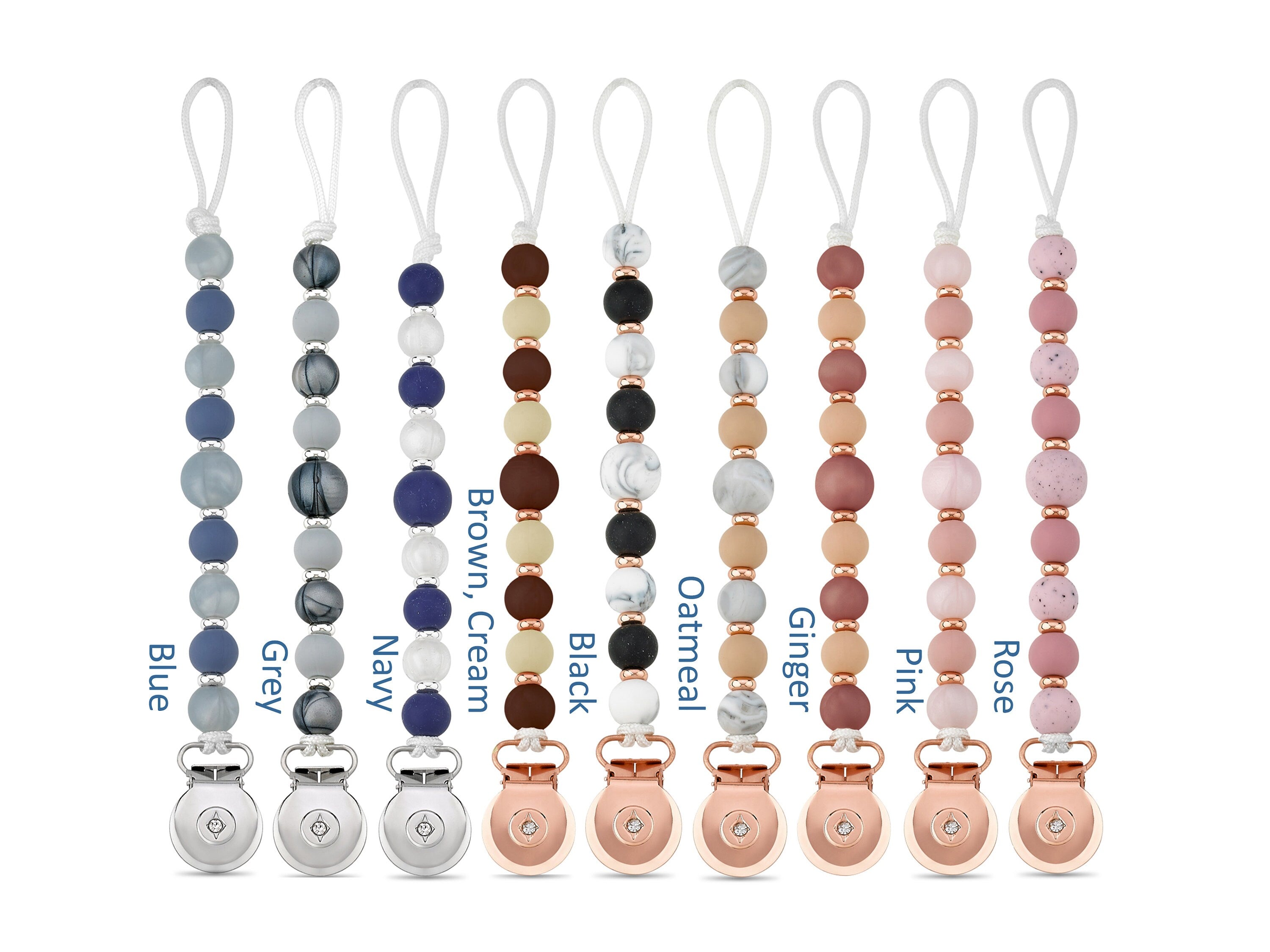 This beautiful and functional solid sili-clip is handmade using nylon cord, 100% food grade silicone beads, and Crystal Dream clip. It’s approximately 8″ long and attaches to almost any brand pacifier (adapter needed for Mam pacifiers, can be purchased separately). The clip is rust free to eliminate rust stains on clothing, made of heavy metal for strength and durability, and is individually checked by our professional team to secure clip safety.