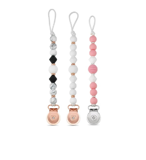 This beautiful and functional solid sili-clip is handmade using nylon cord, 100% food grade silicone beads, and Crystal Dream clip. It’s approximately 8″ long and attaches to almost any brand pacifier (adapter needed for Mam pacifiers, can be purchased separately). The clip is rust free to eliminate rust stains on clothing, made of heavy metal for strength and durability, and is individually checked by our professional team to secure clip safety.