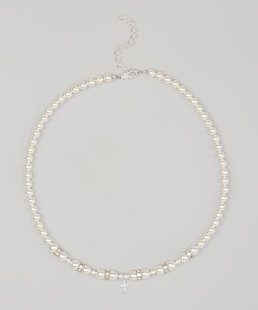 Silver & White Pearl Rondelle Cross Necklace (N134)