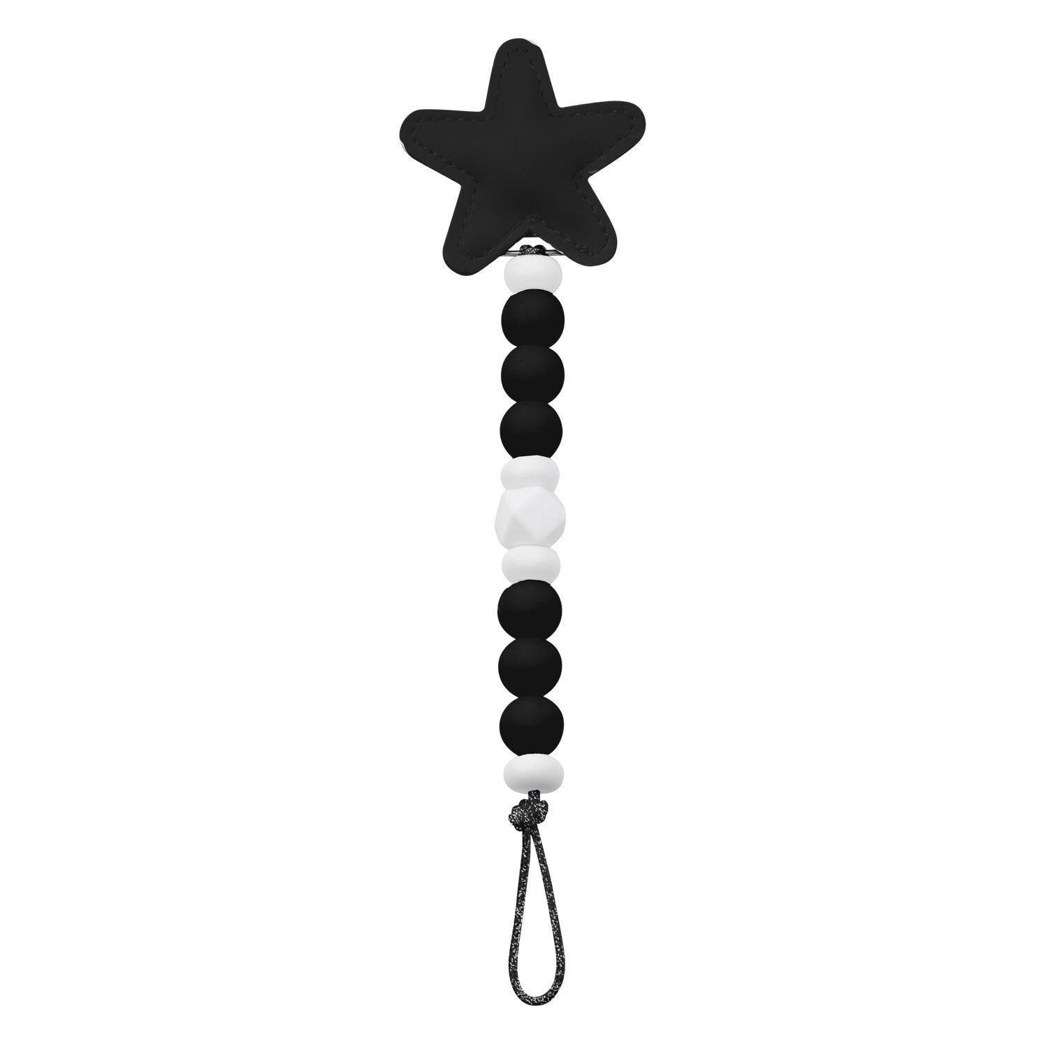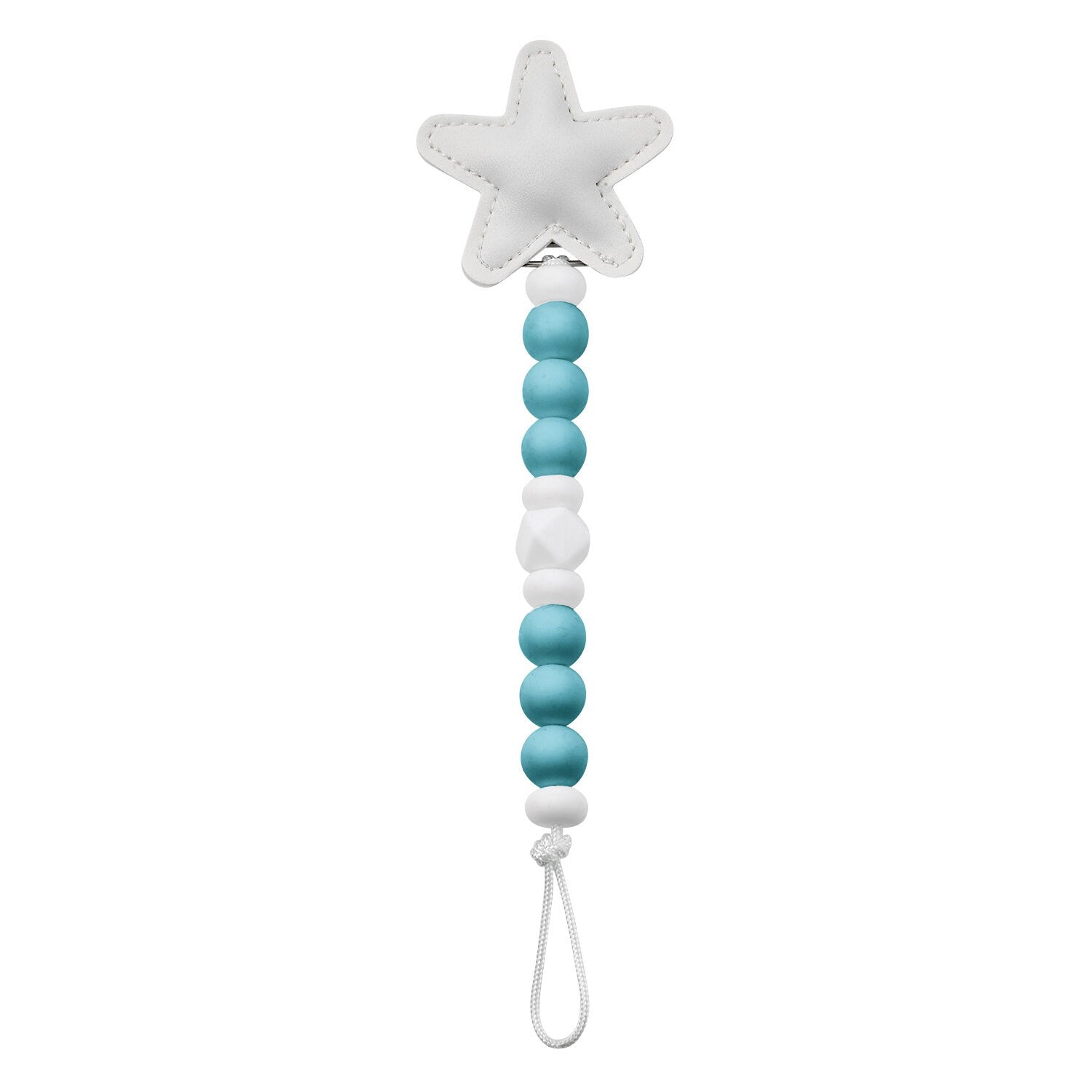 This beautiful and functional star sili-clip is handmade using nylon cord, 100% food grade silicone beads, and Crystal Dream clip. It’s approximately 8″ long and attaches to almost any brand pacifier (adapter needed for Mam pacifiers, can be purchased separately). The clip is rust free to eliminate rust stains on clothing, made of heavy metal for strength and durability, and is individually checked by our professional team to secure clip safety.