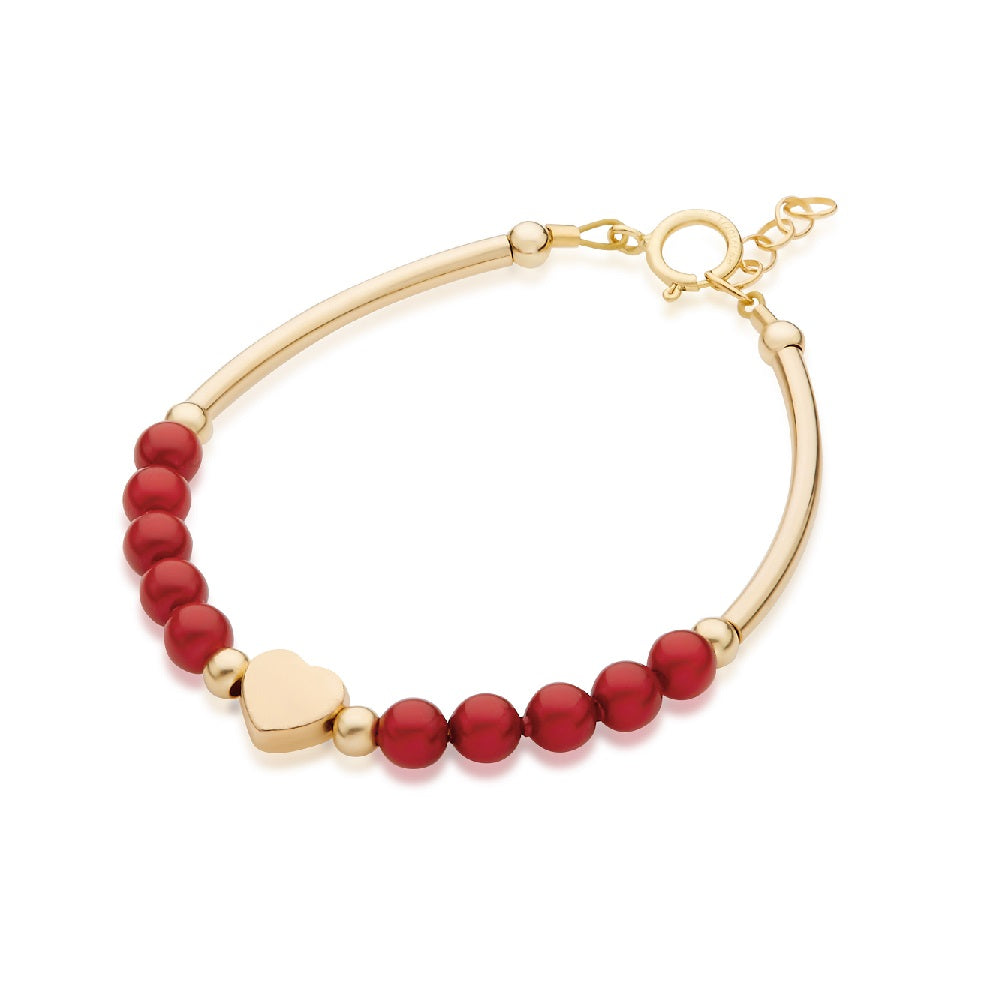 Elegant 14k Gold-Filled Bangle Bracelet with Heart Charm & Red-Gold Beads (BN2503)