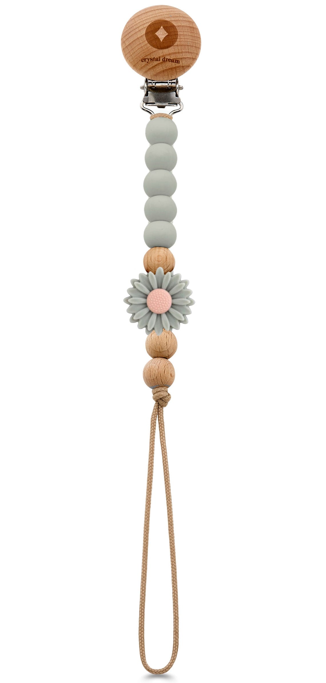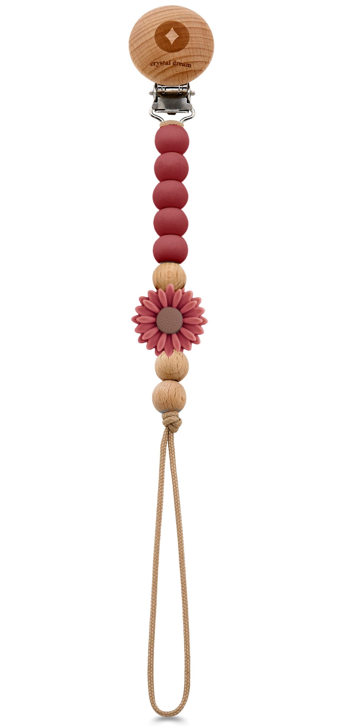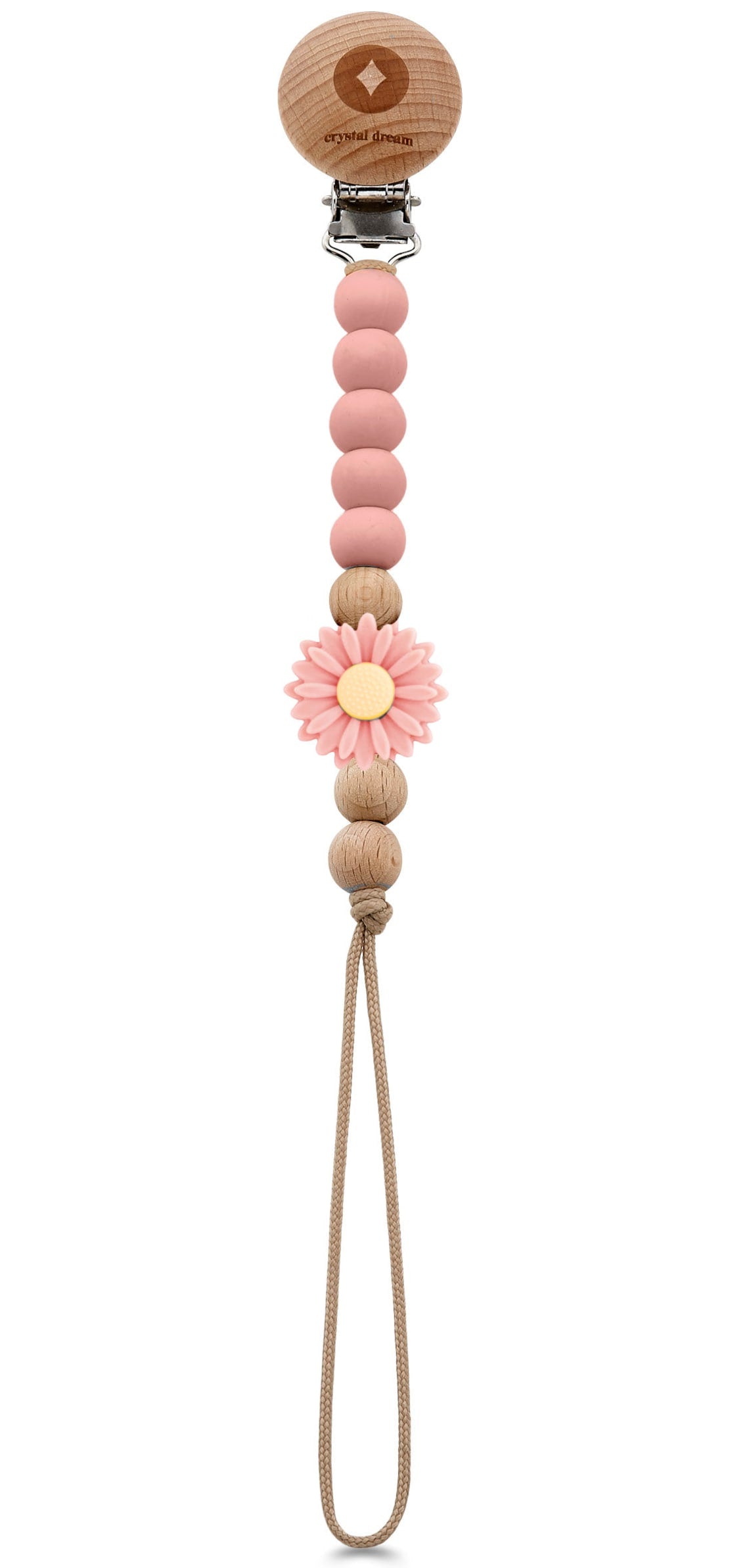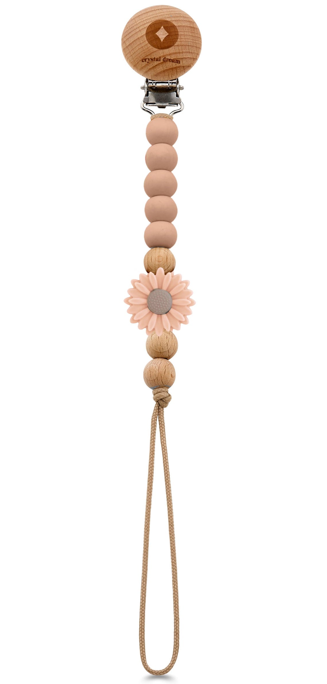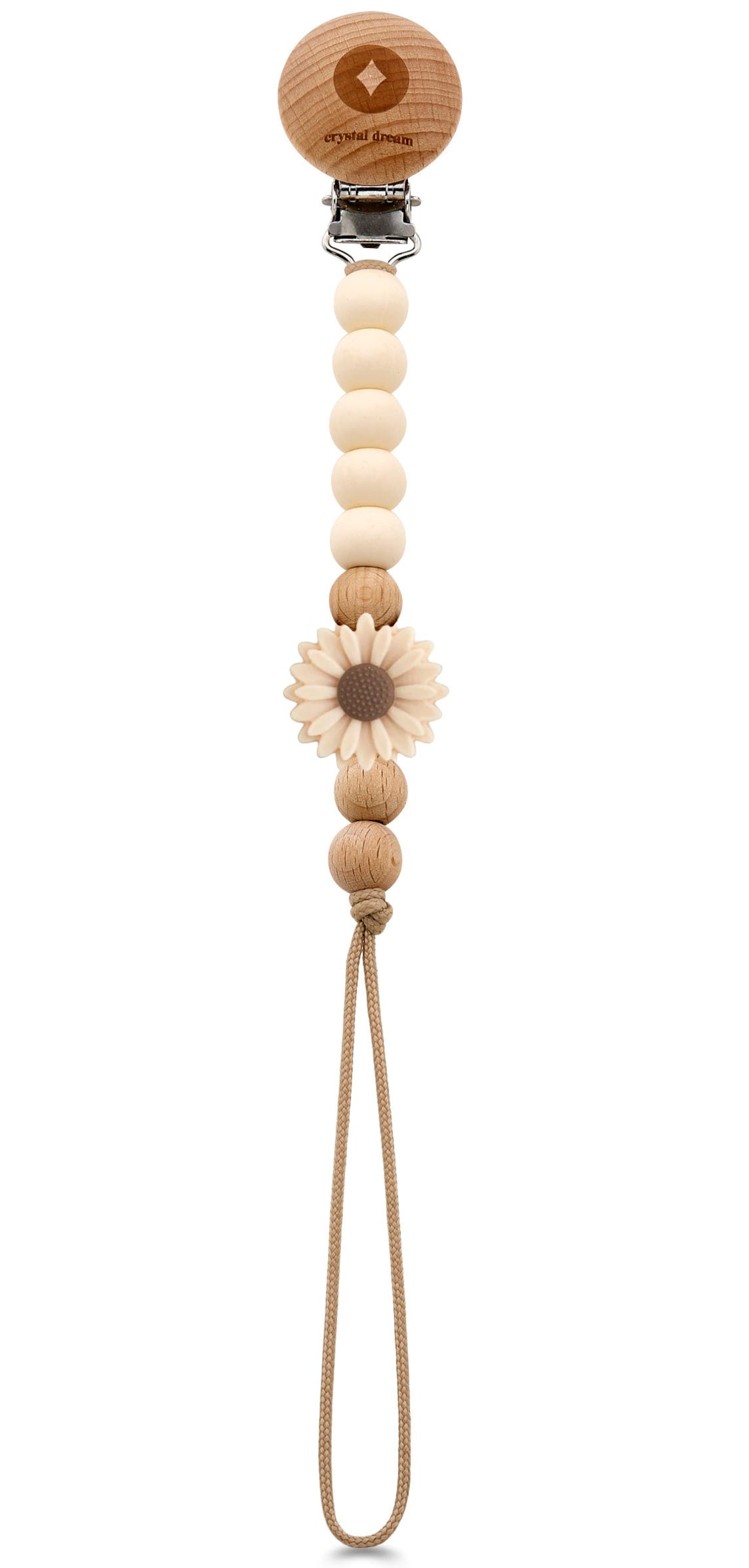 Wooden pacifier clip with silicone daisy and wooden beads (SWD)