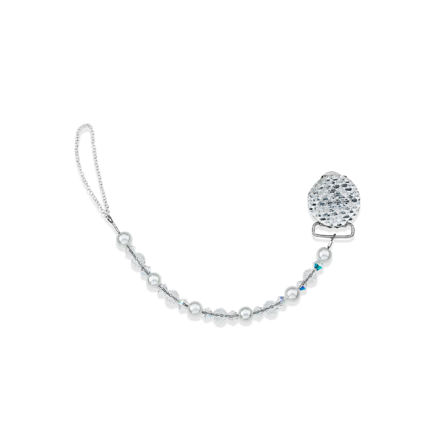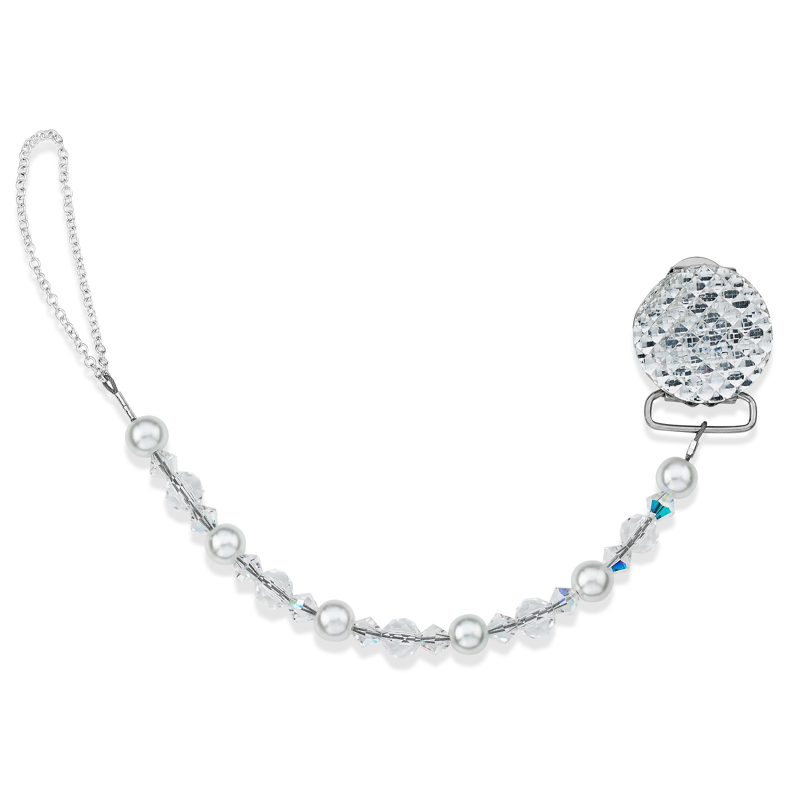 European Crystals and Pave Beads Pearl Pacifier Clip | Pacifier Sold Seperately (CQSW, CQSP,CQSB)