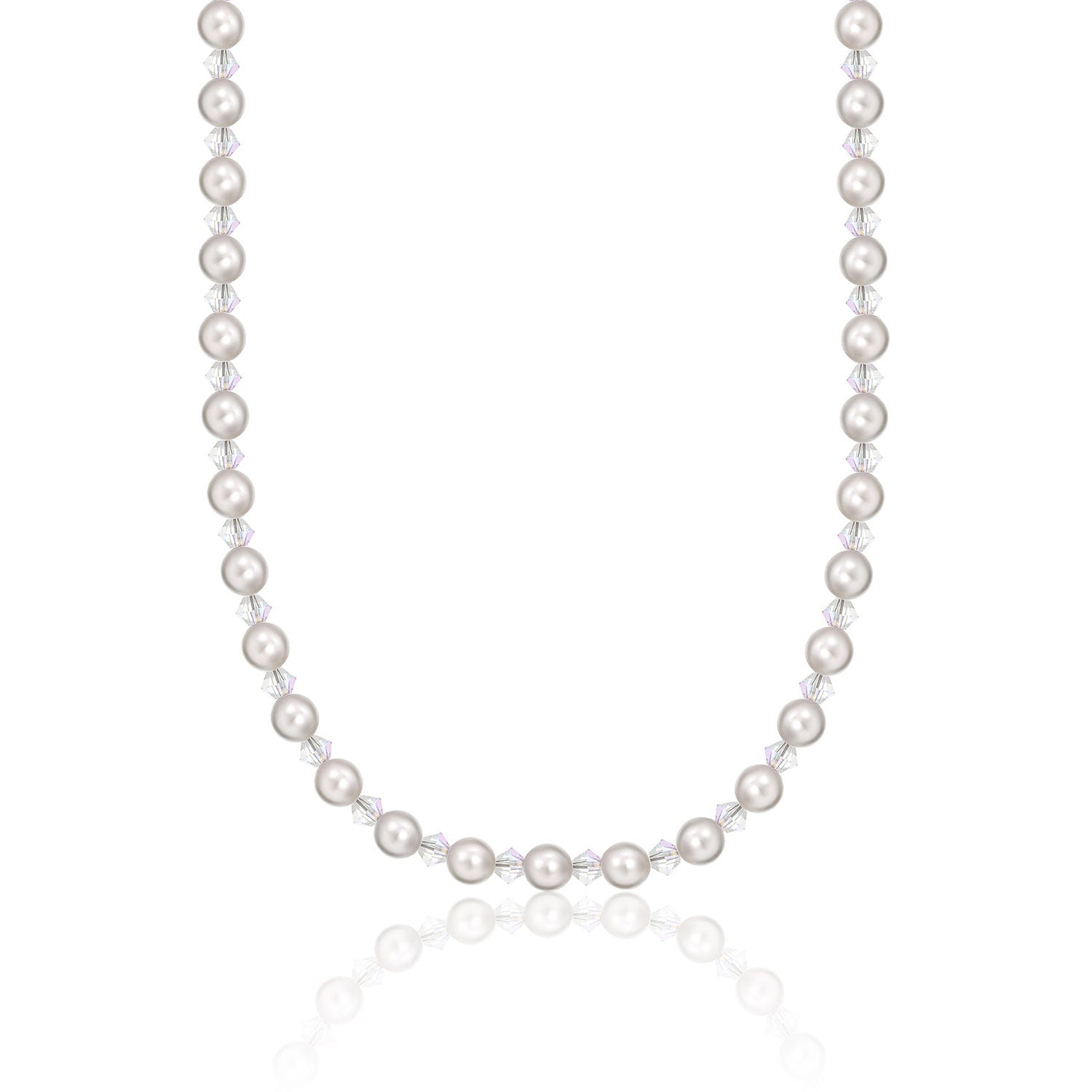 White European Pearls with Clear Crystal Beaded Necklace (NPWC)